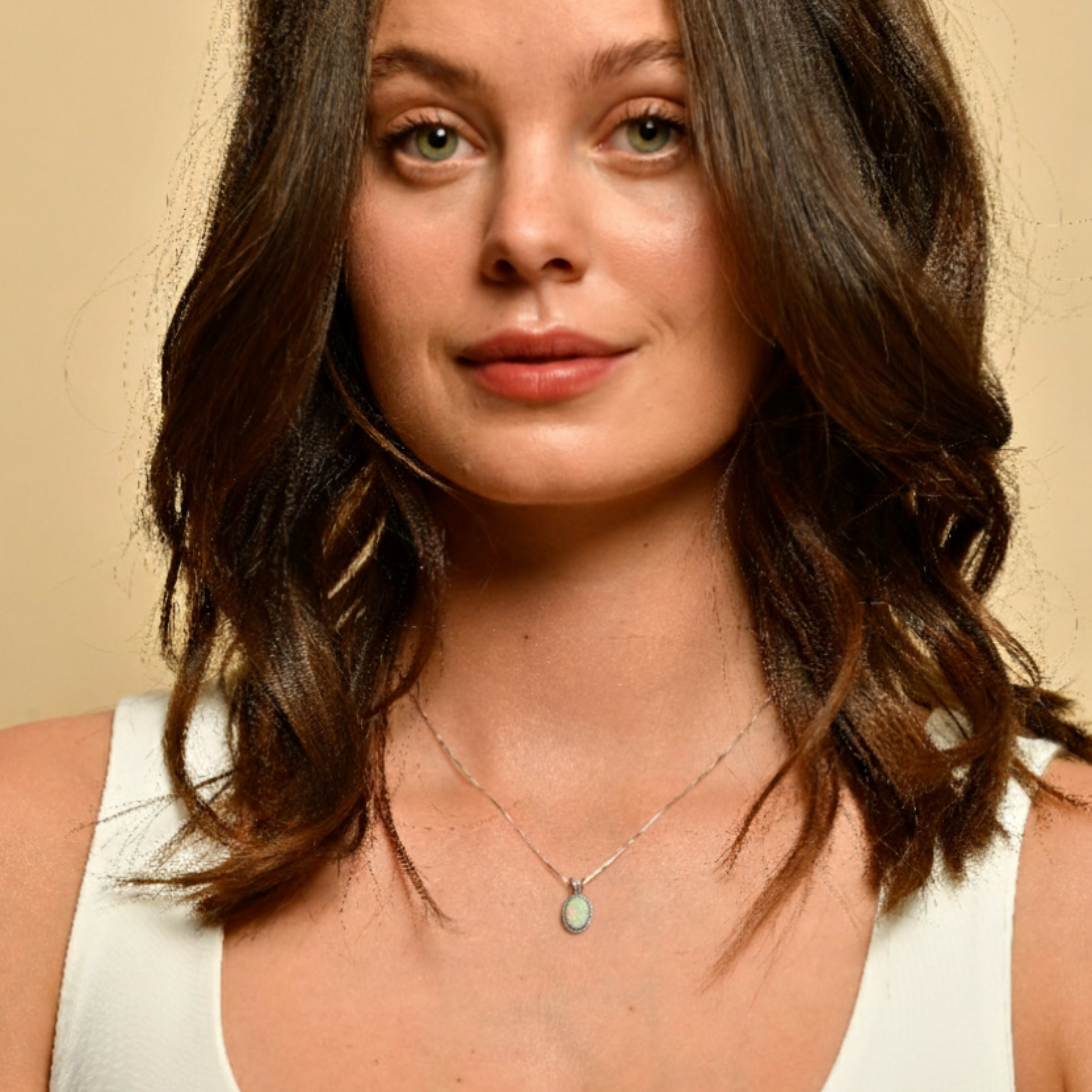 Elegant 925 Sterling Silver pendant showcasing a shimmering oval Ethiopian Opal, ideal for special occasions and daily elegance.