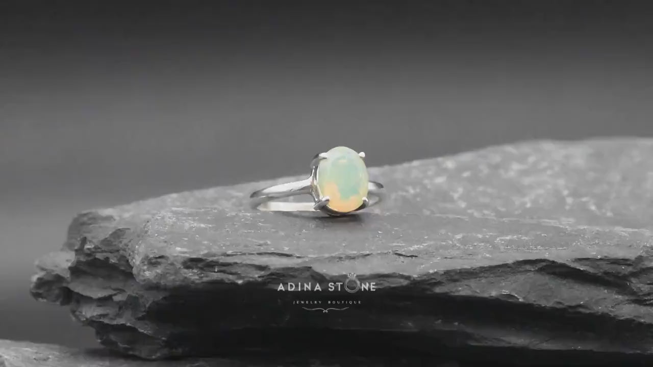 Fire Opal Ring, Natural Opal Ring, Ethiopian Opal, Opal Ring, October Birthstone, Opal Vintage Ring, Engagement Ring, Sterling Silver Ring(1)