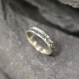 Fish Bone Ring, Engraved Band, Fish Ring, Dented Ring, Thick Silver Band, Sterling Silver Ring, Fishbone Silver Band, Solid Silver Ring