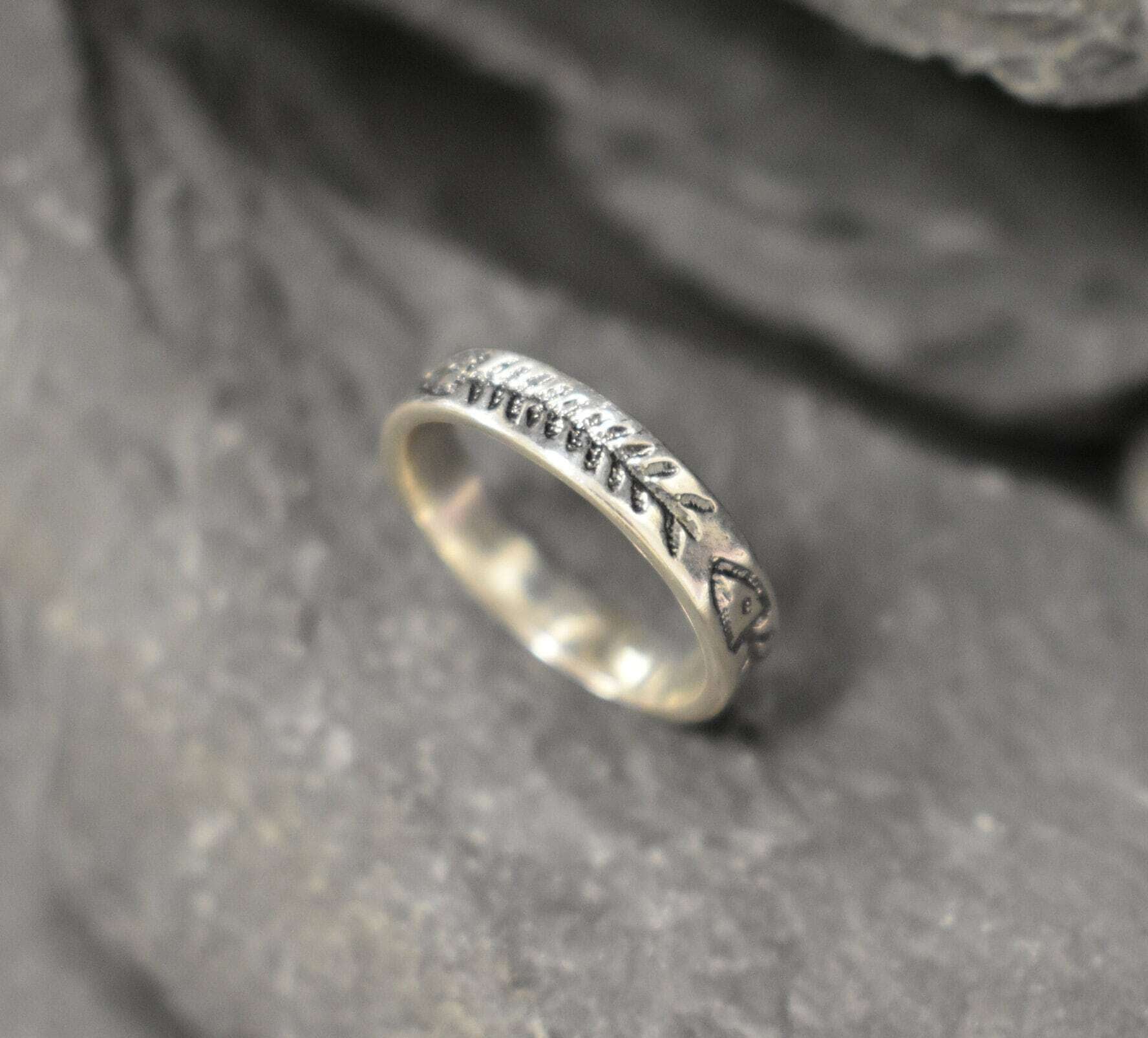Fish Bone Ring, Engraved Band, Fish Ring, Dented Ring, Thick Silver Band, Sterling Silver Ring, Fishbone Silver Band, Solid Silver Ring(1)