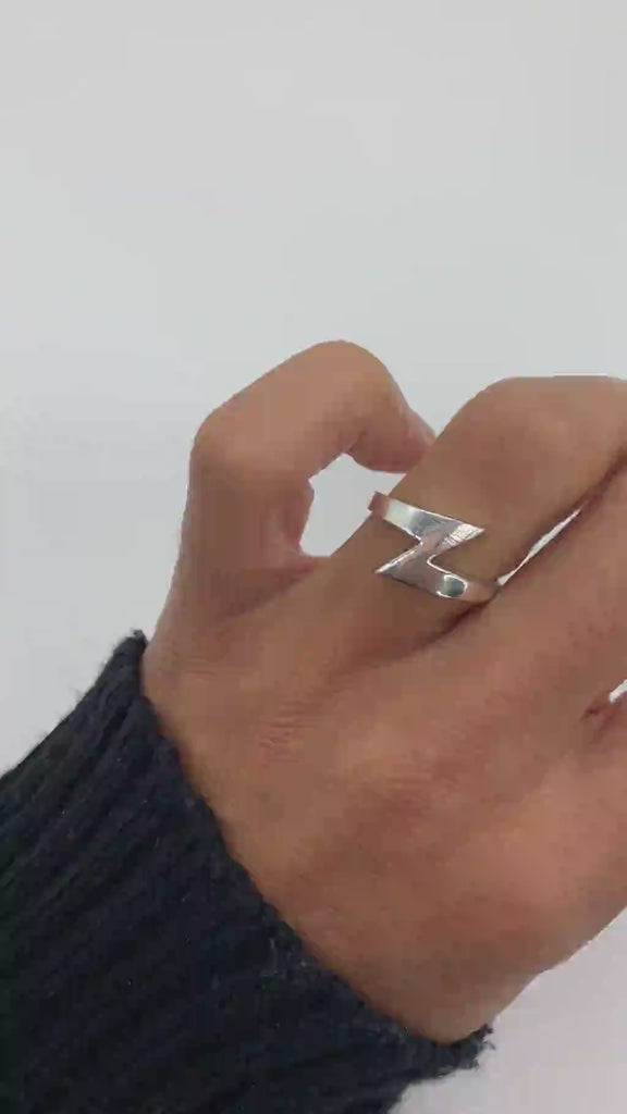 Flash Sliver Ring - Lightning Bolt Signet - Thunder Silver Ring