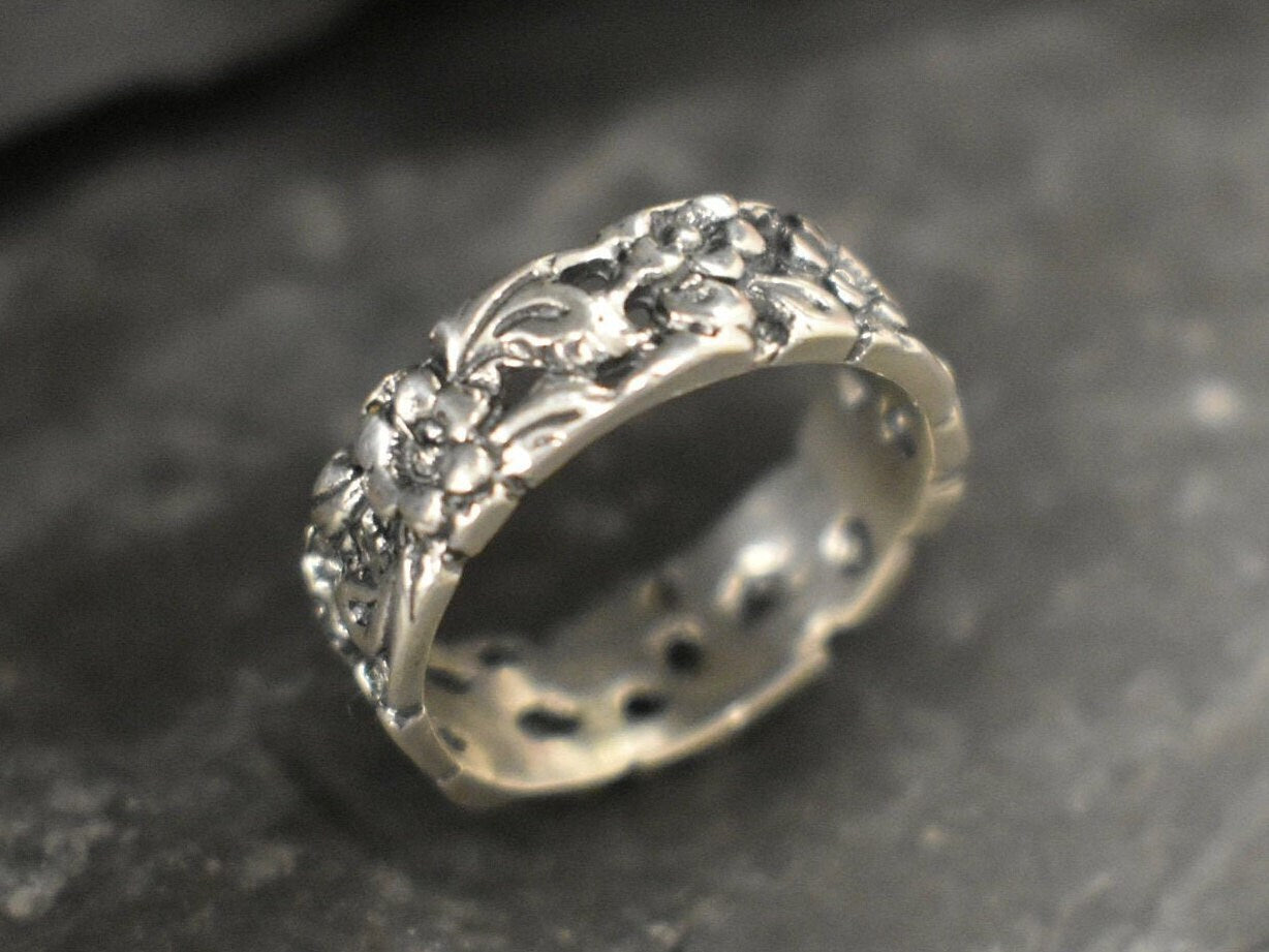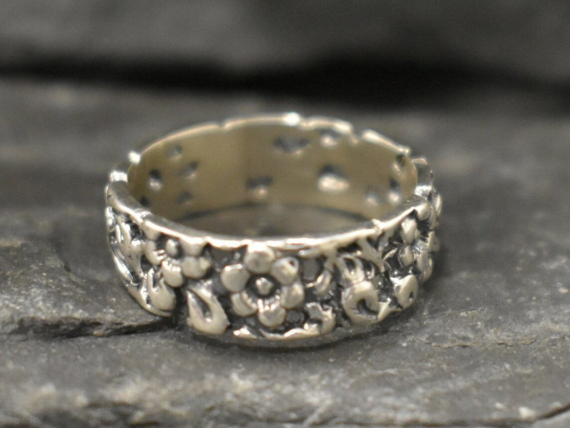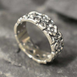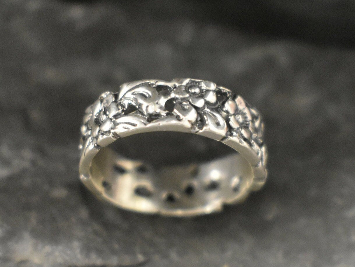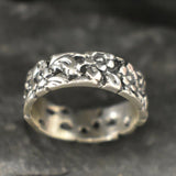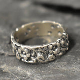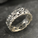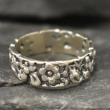 Flower Band, Silver Flower Band, Designer Ring, Solid Silver ring, Wide Band Ring, Flower Ring, Silver Flower Ring, Small Floral Band