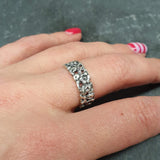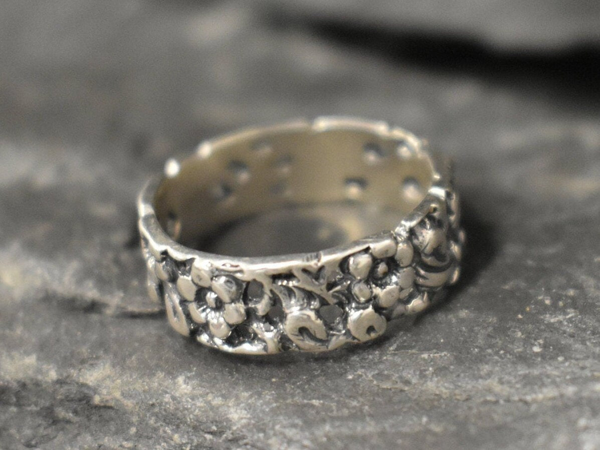 Silver Flower Band - Vintage Flower Ring - Wide Floral Band