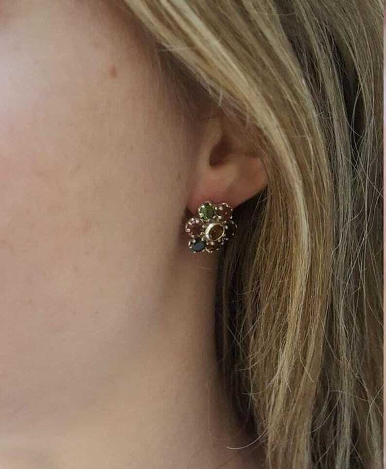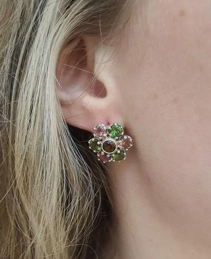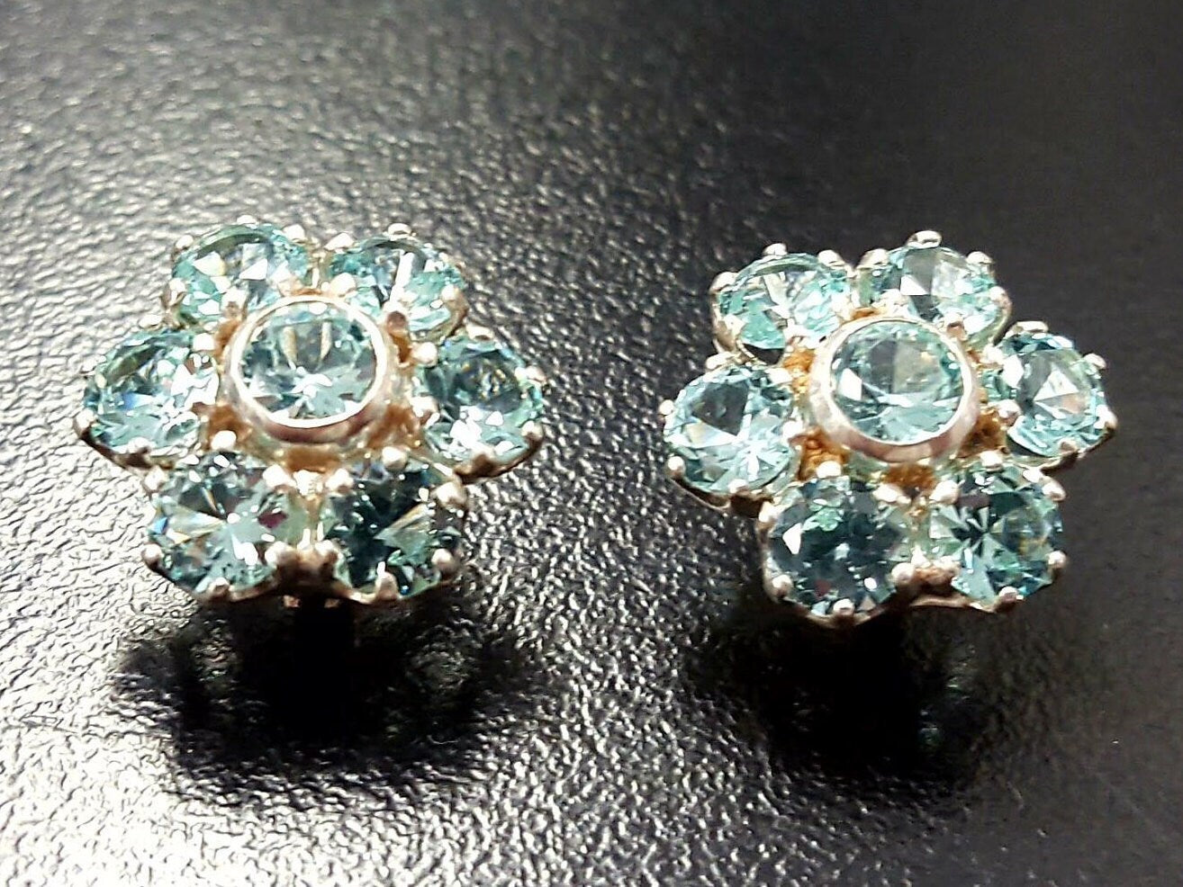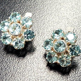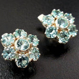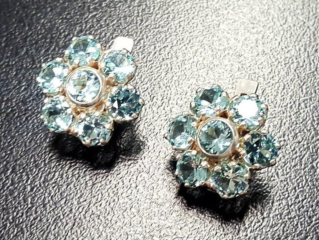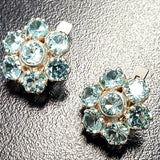 Flower Aquamarine Earrings - Big Flower Studs - Blue Vintage Earrings