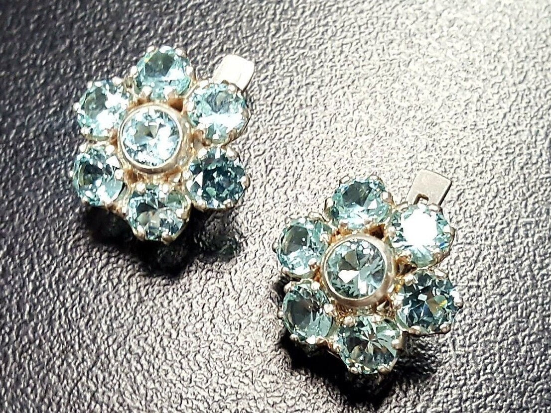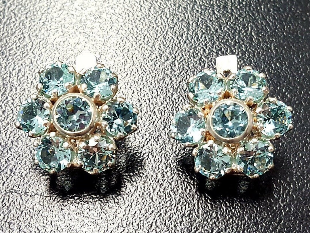 Flower Earrings, Aquamarine Earrings, Created Aquamarine, Daisy Earrings, Blue Earrings, Vintage Earrings, Aqua Earrings, Silver Earrings