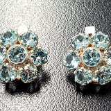 Flower Aquamarine Earrings set with a Created Aquamarine in a perfect diamond cut, flawless clarity & stunning aqua color, at 5mm each (7 Cts a pair).
