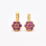 Red Flower Earrings set with a Natural Ruby in a diamond cut & natural red color, at 3mme ach (2 Cts a pair) from Burma.