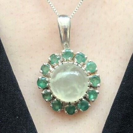 • Natural Prehnite (South Africa), Natural Emerald (Colombia)