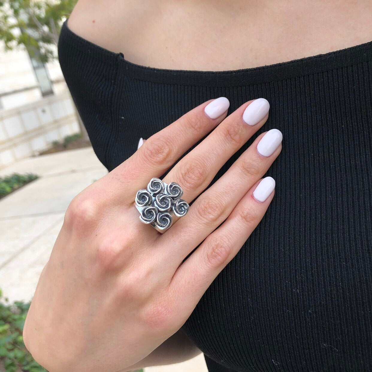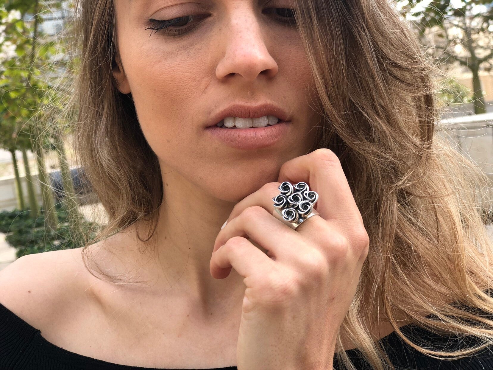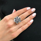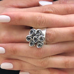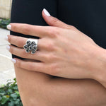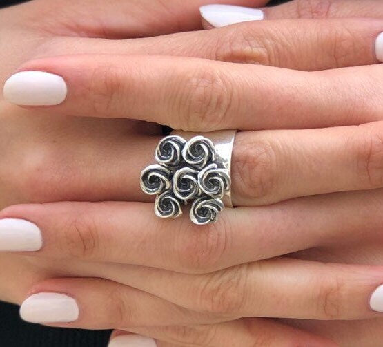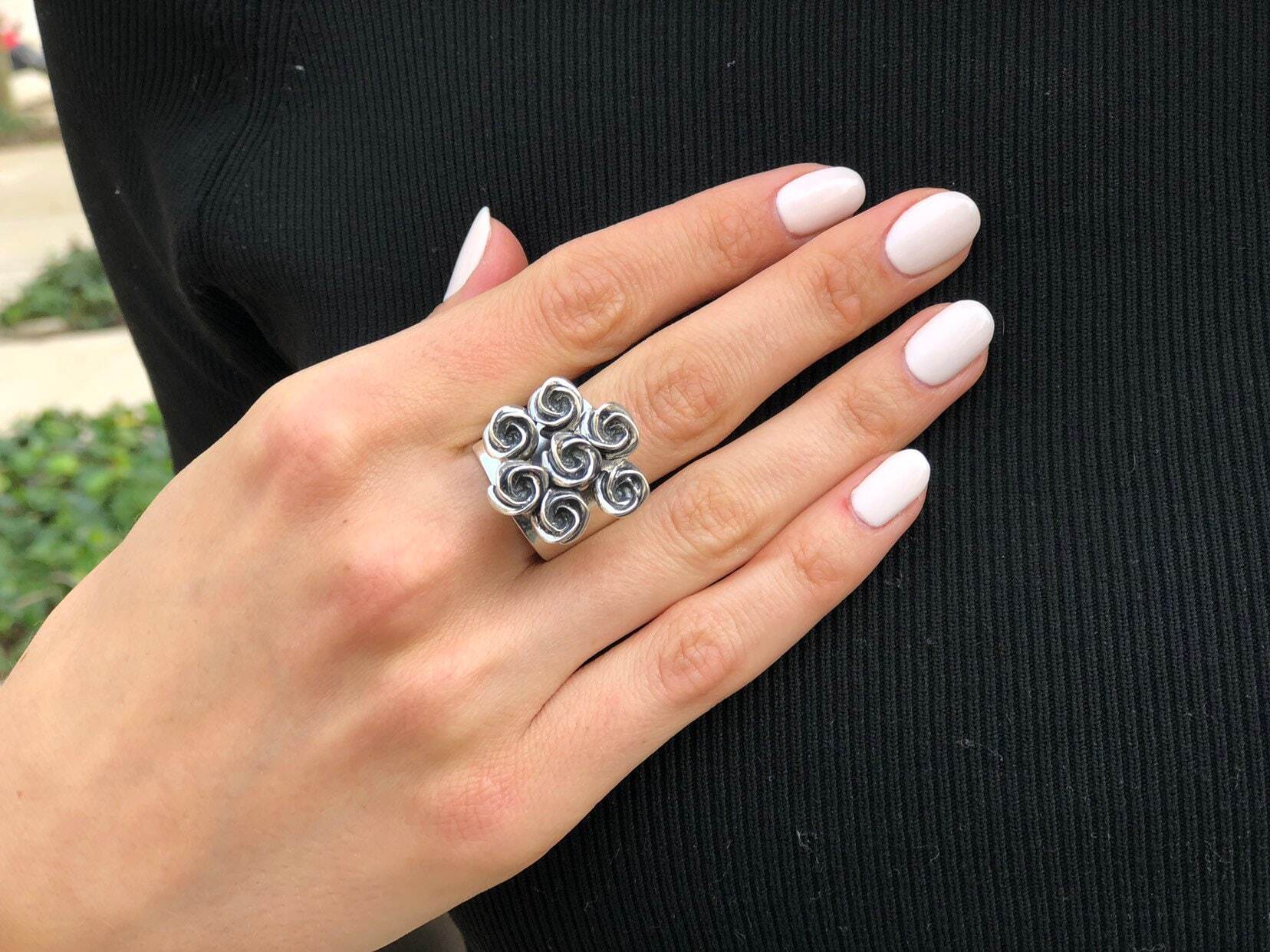 Silver Flower Ring - Cluster Roses Ring - Vintage Bouquet Ring