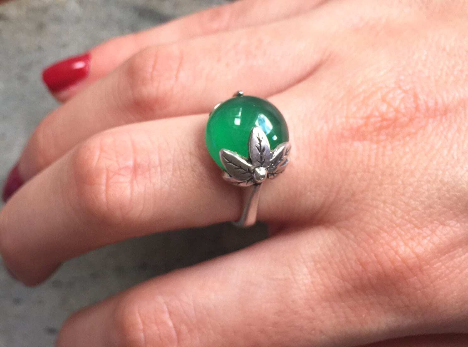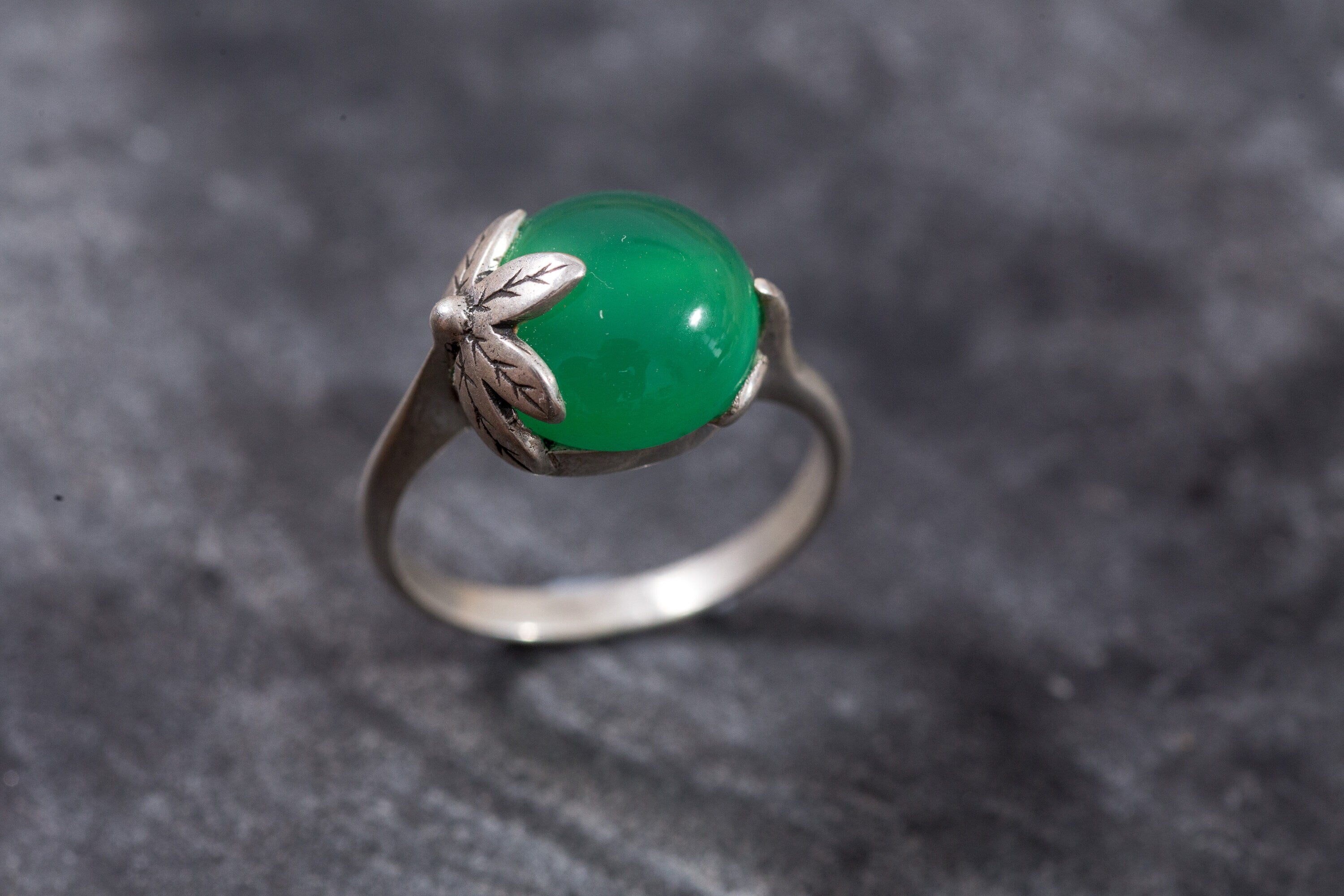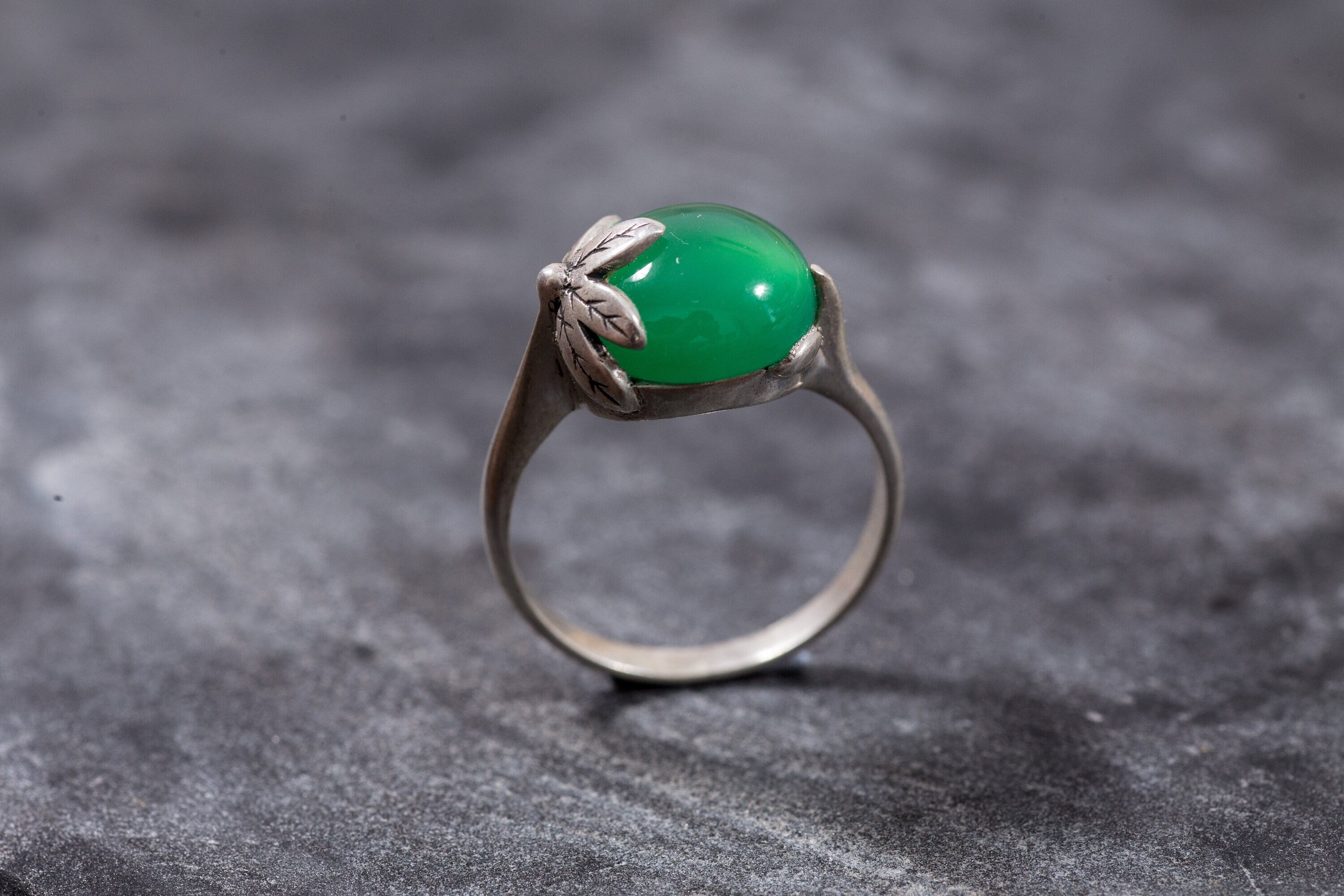 Emerald Leaf Ring - Green Statement Ring - Boho Emerald Ring