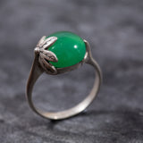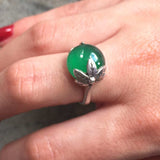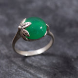 Emerald Leaf Ring set with Created Emerald in a cabochon cut & vivid green color, at size 12mm (7 Cts).