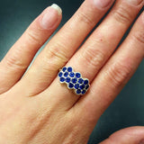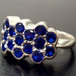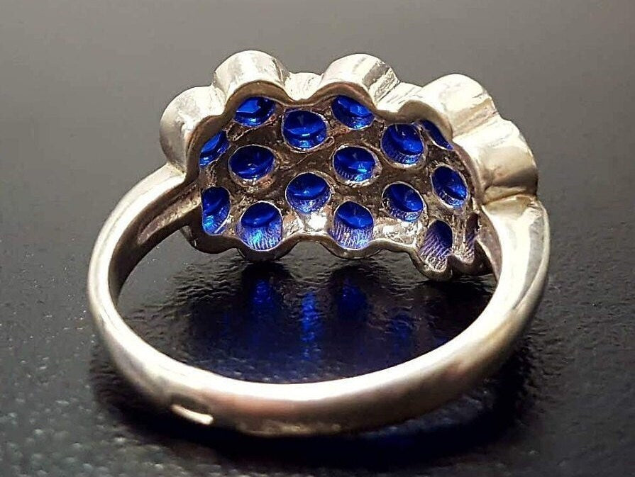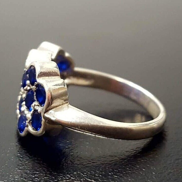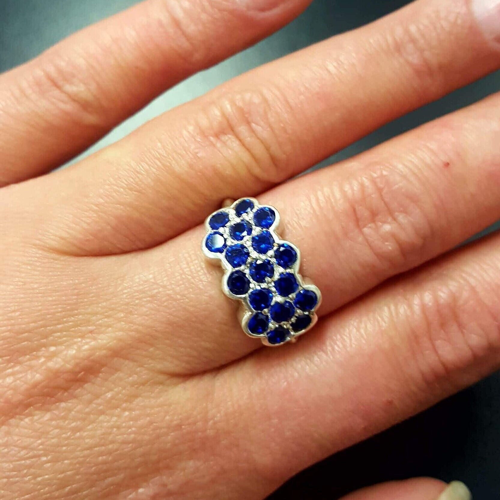 Flower Sapphire Ring - Blue Honeycomb Ring - Vintage Half Eternity Band