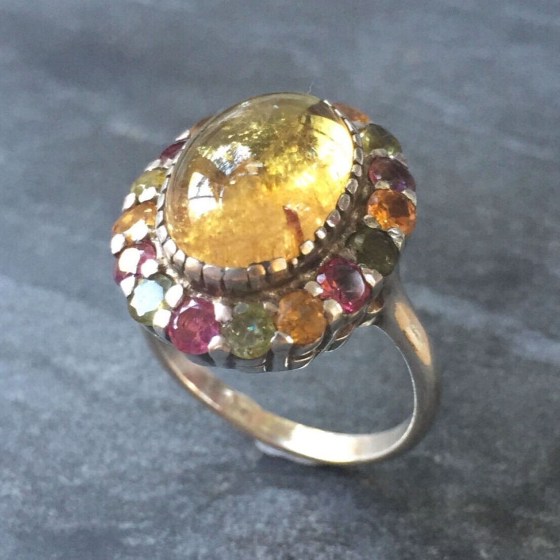 Flower Tourmaline Ring - Yellow Cocktail Ring - Multistone Victorian Ring