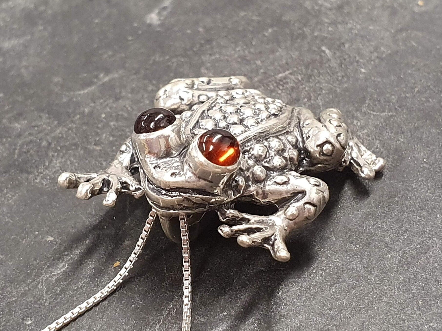 Frog Pendant, Garnet Pendant, Natural Garnet, January Birthstone, Animal Pendant, January Pendant, Frog Eyes Pendant, Solid Silver Pendant