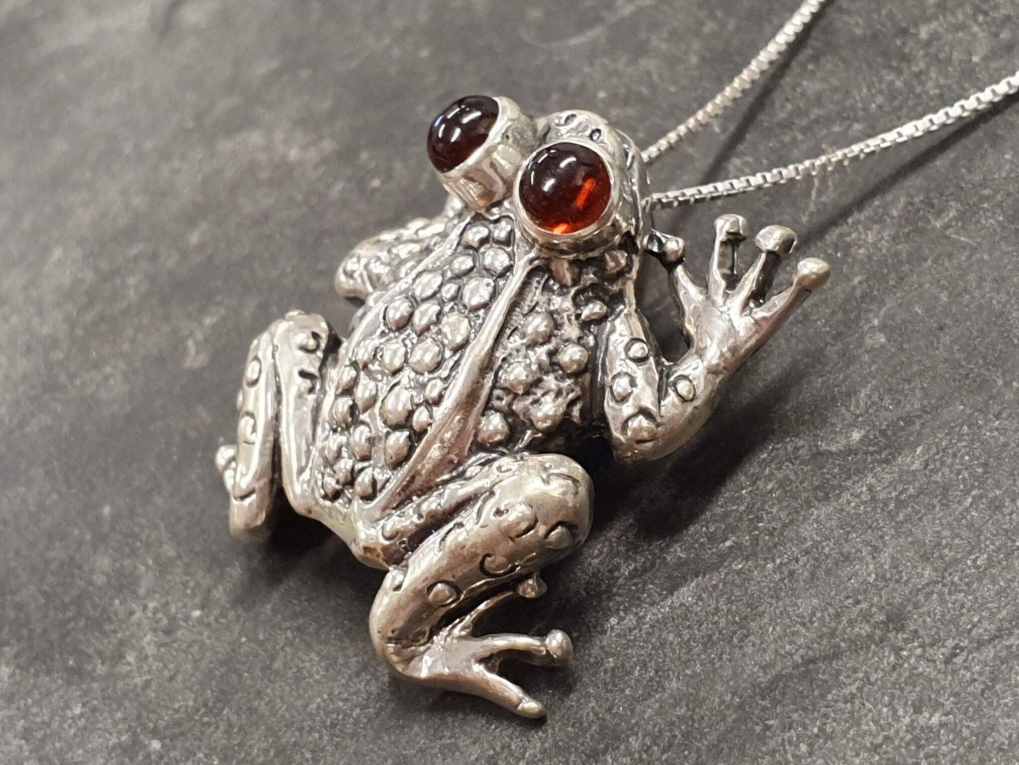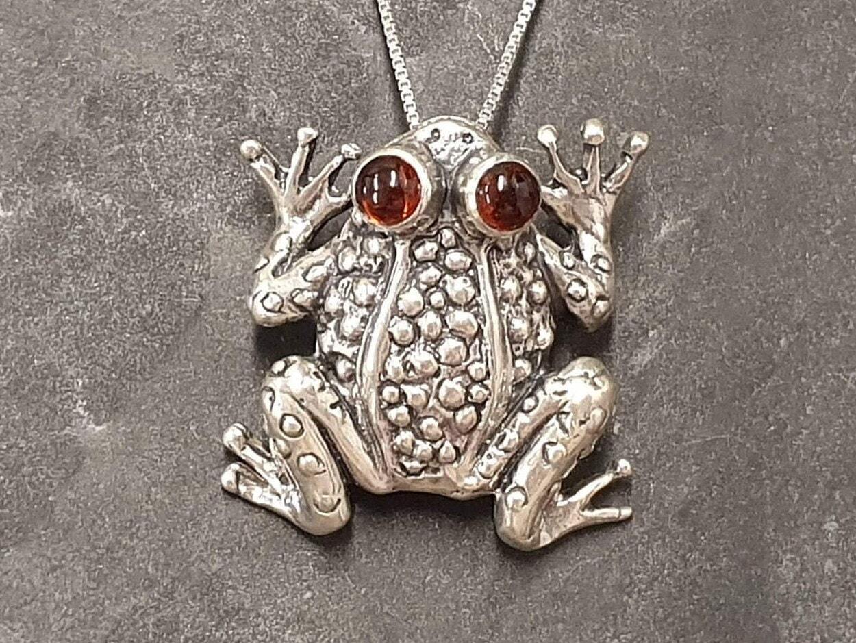 Frog Pendant - Real Garnet Necklace - Large Frog Necklace