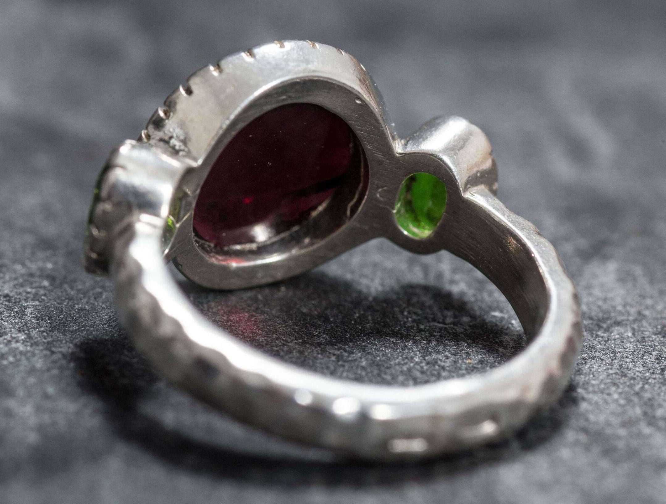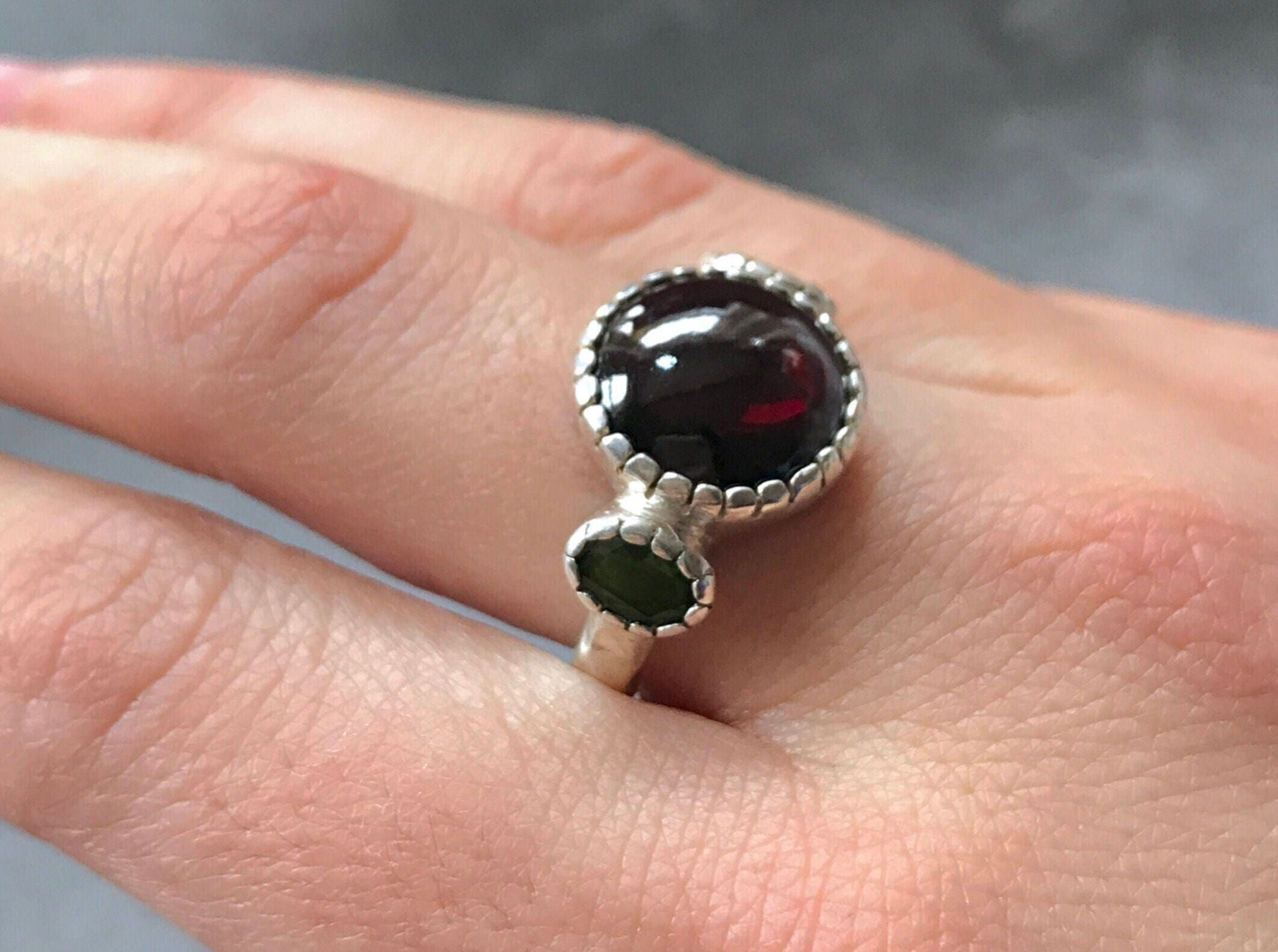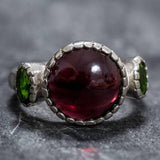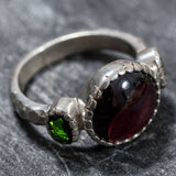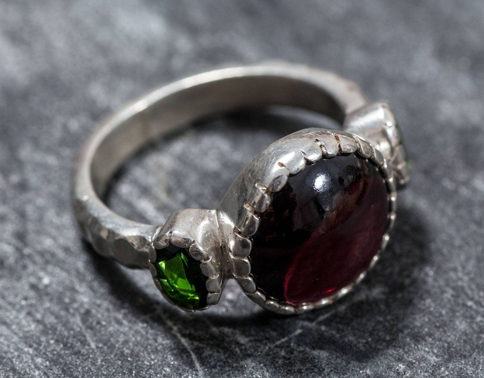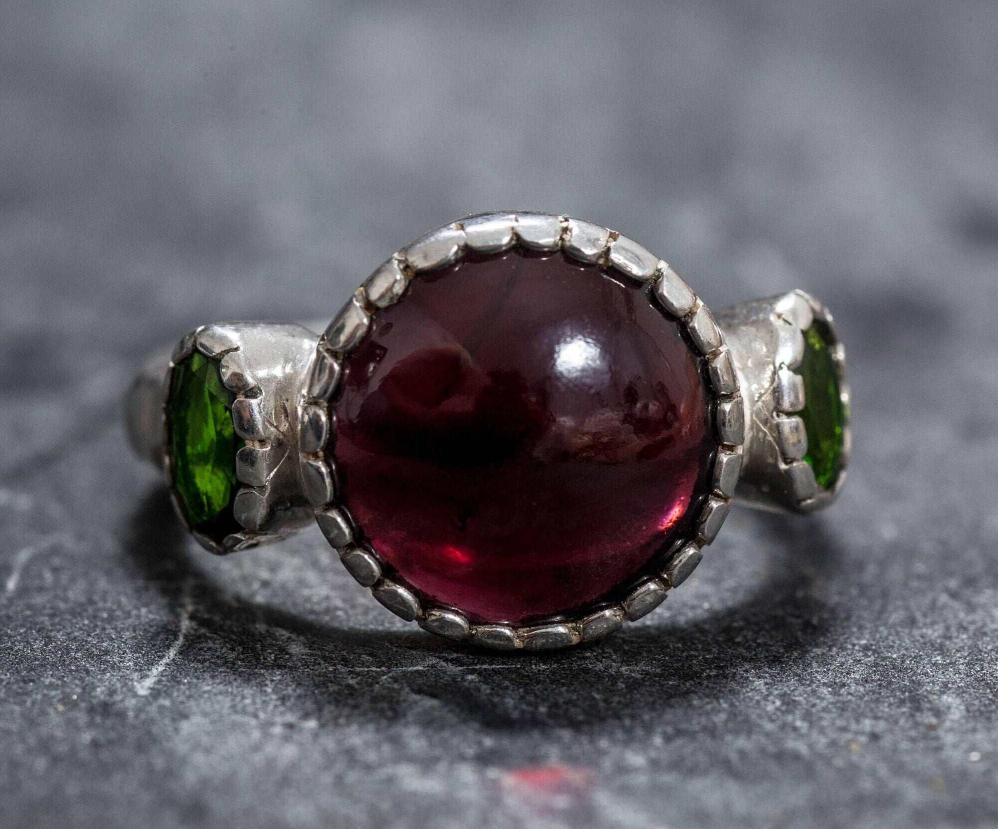 Garnet Ring, Chrome Diopside Ring, January Birthstone, Natural Garnet, Natural Chrome Diopside, Vintage Ring, Antique Ring, Silver Ring