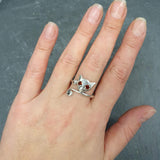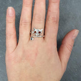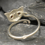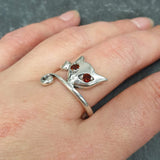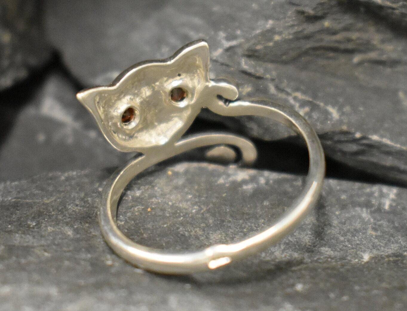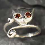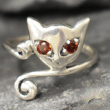 Garnet Ring - Silver Cat Ring - Vintage Cat Ring