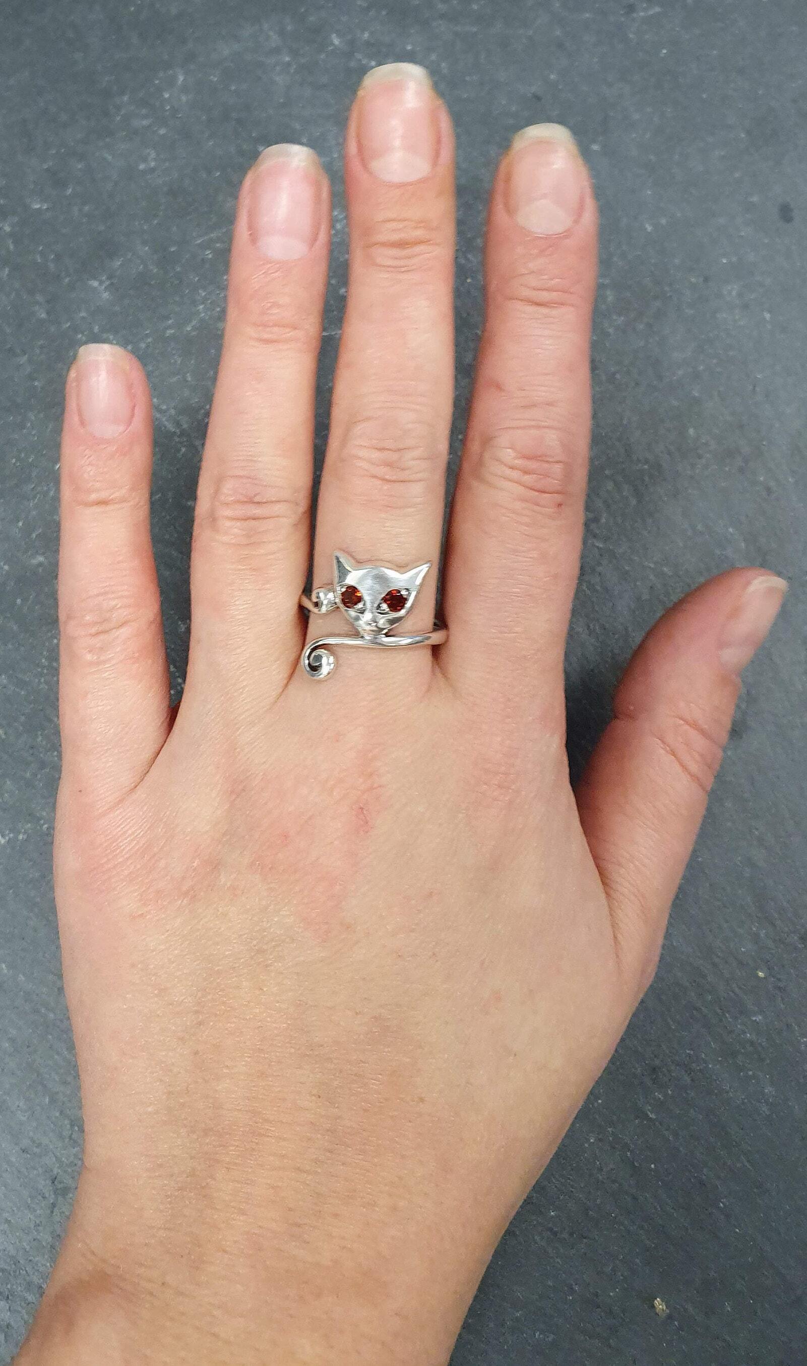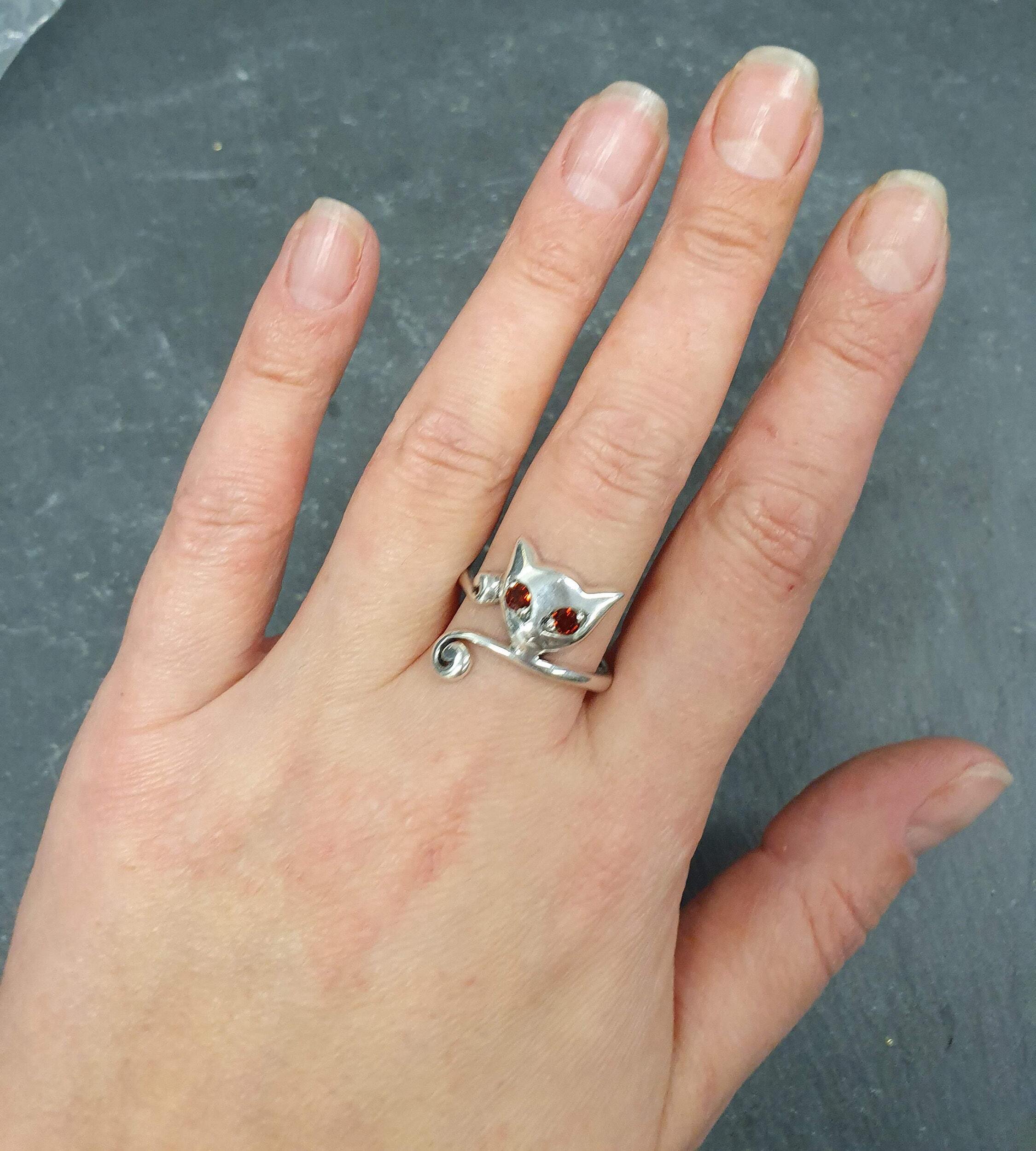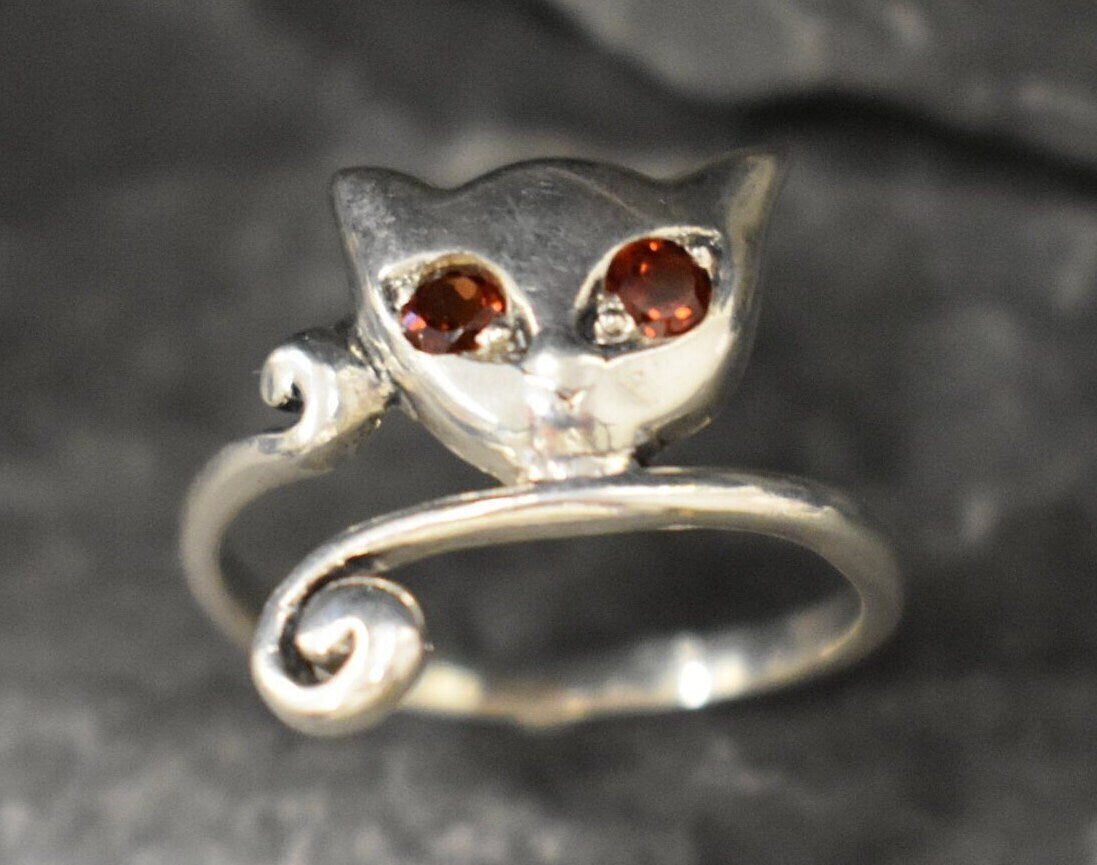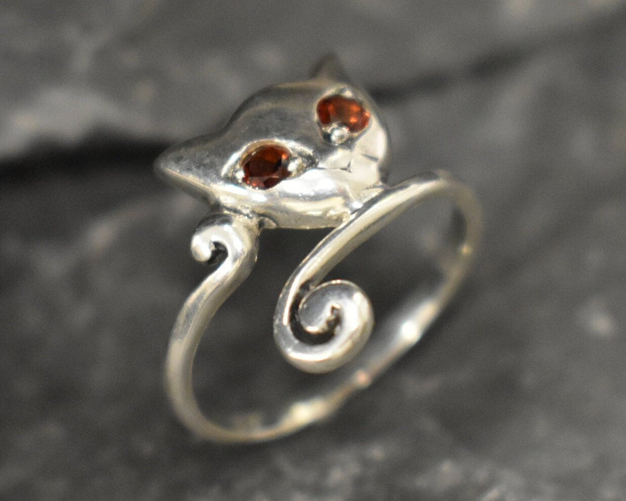 Garnet Ring, Natural Garnet, January Birthstone, Silver Cat Ring, Vintage Cat Ring, Red Eyes Ring, Cats Eye Ring, 925 Silver Ring, Red Ring