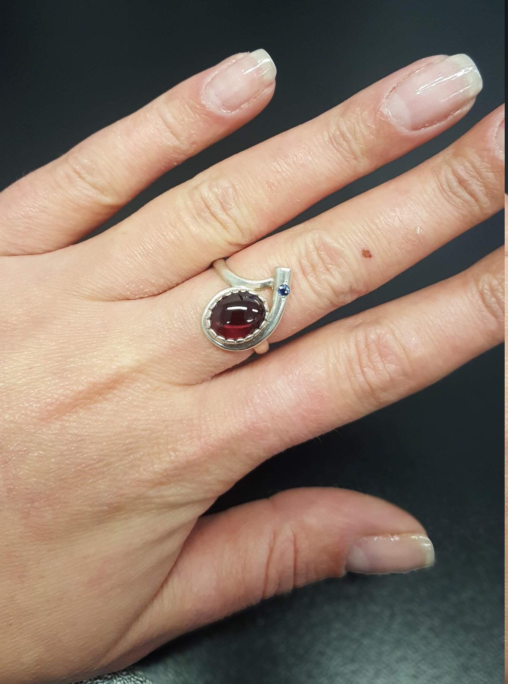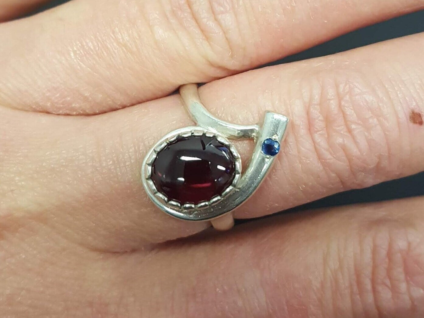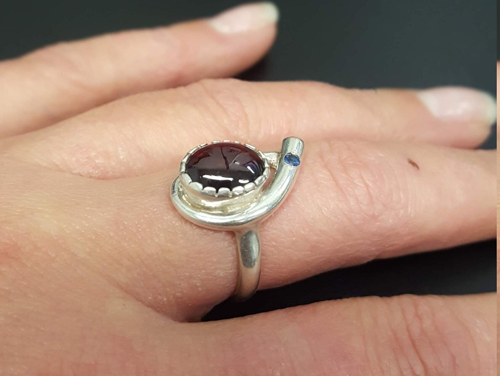 Garnet Ring, Natural Garnet, Red Garnet Ring, Natural Sapphire, January Birthstone, Unique Ring, January Ring, Red Ring, Silver Ring, Garnet