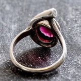 Garnet Ring - Silver Teardrop Ring - Two Stone Ring