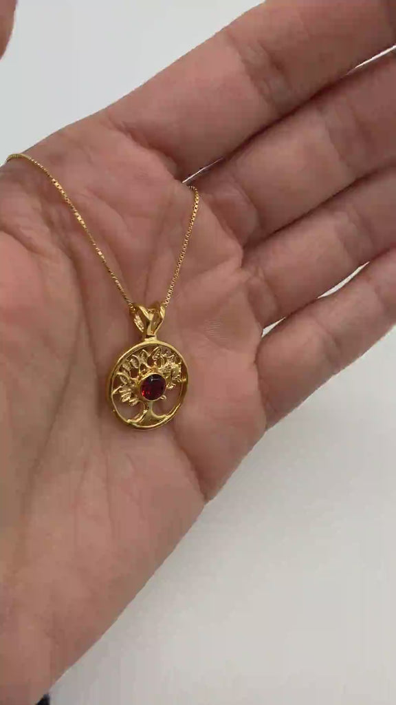 Garnet Tree of Life Pendant - Natural Garnet Necklace, Red Tree Pendant