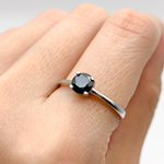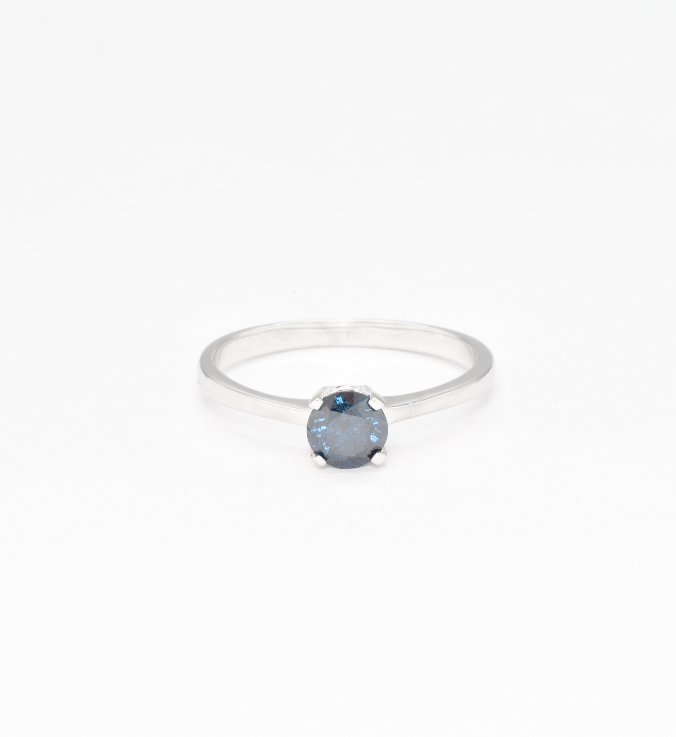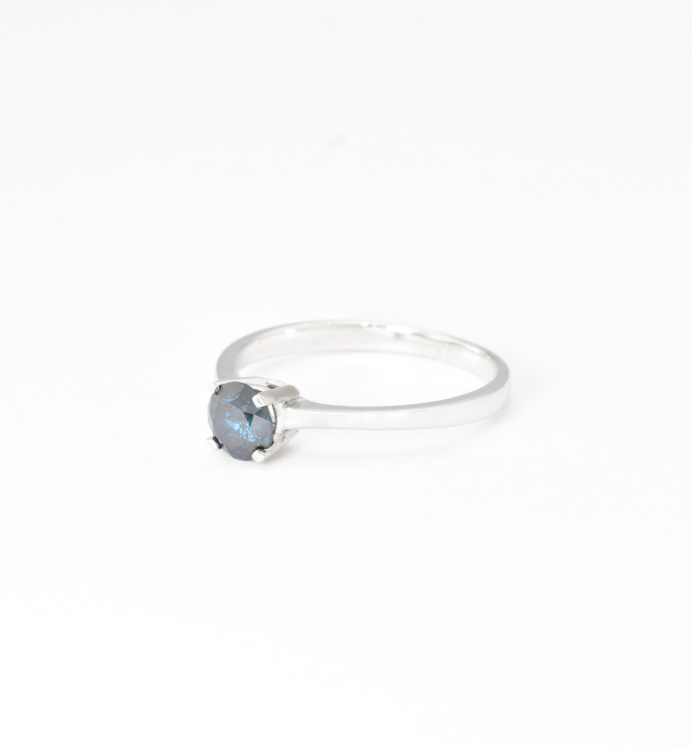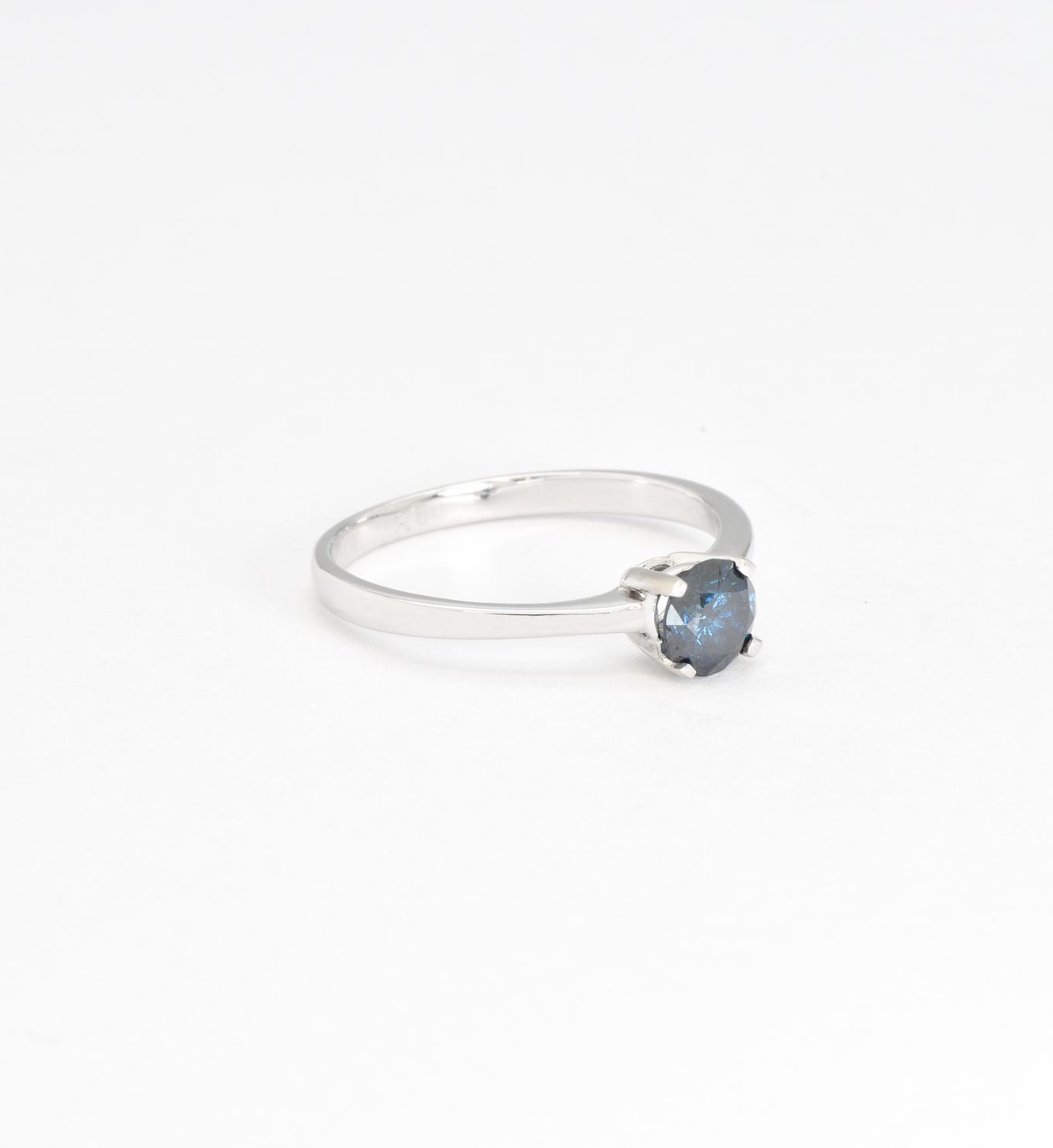 Genuine Blue Diamond Ring - Solid White Gold Ring - Solitaire Diamond Ring