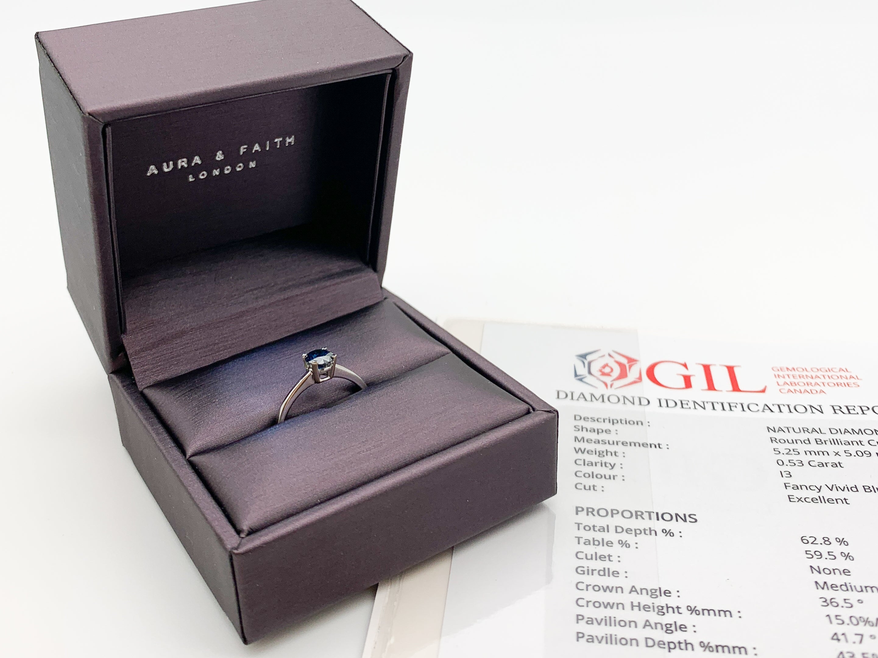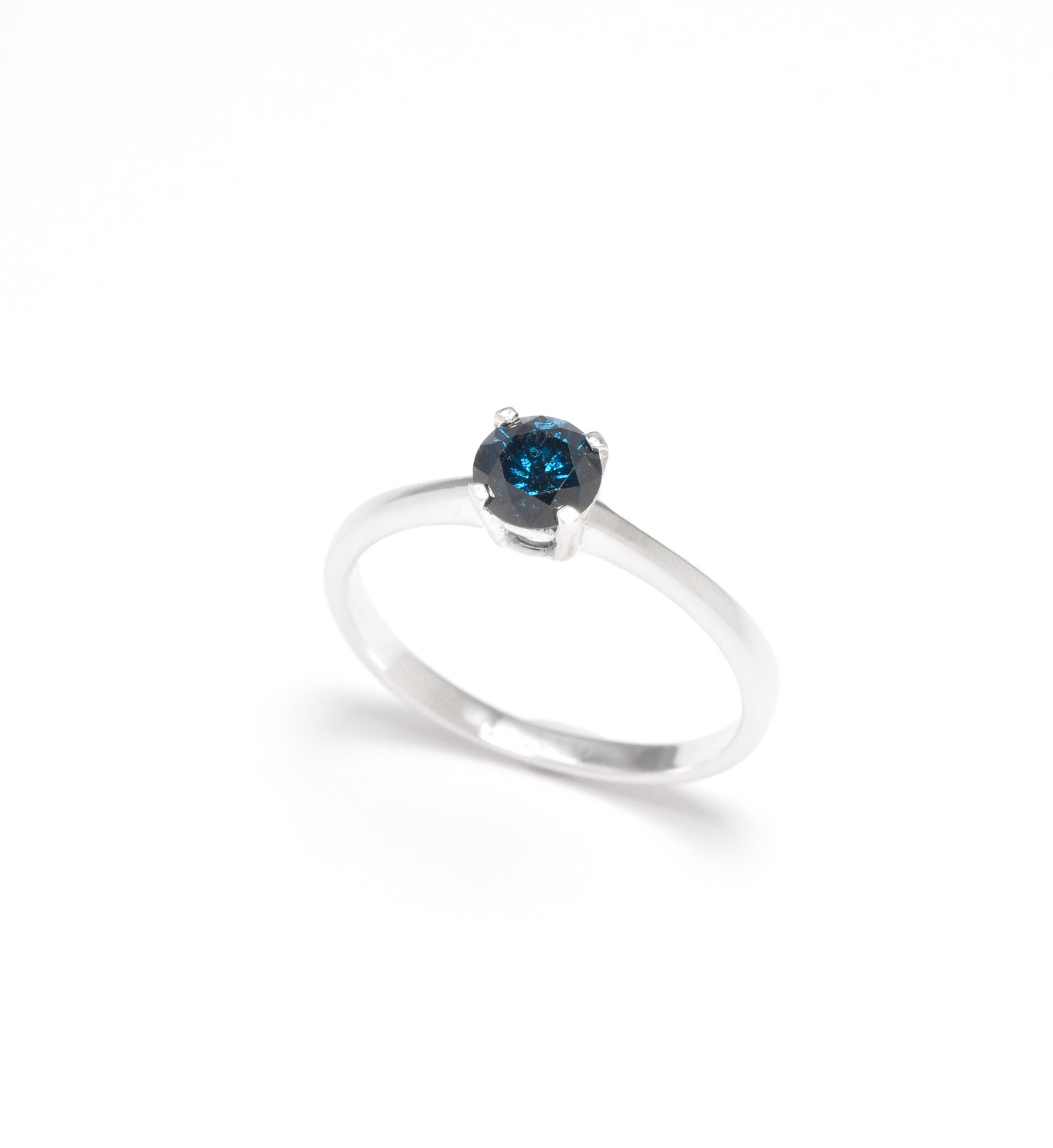 Genuine Blue Diamond Ring set with Natural Blue Diamond, size 5 millimetres diameter, 0.53 Carats.