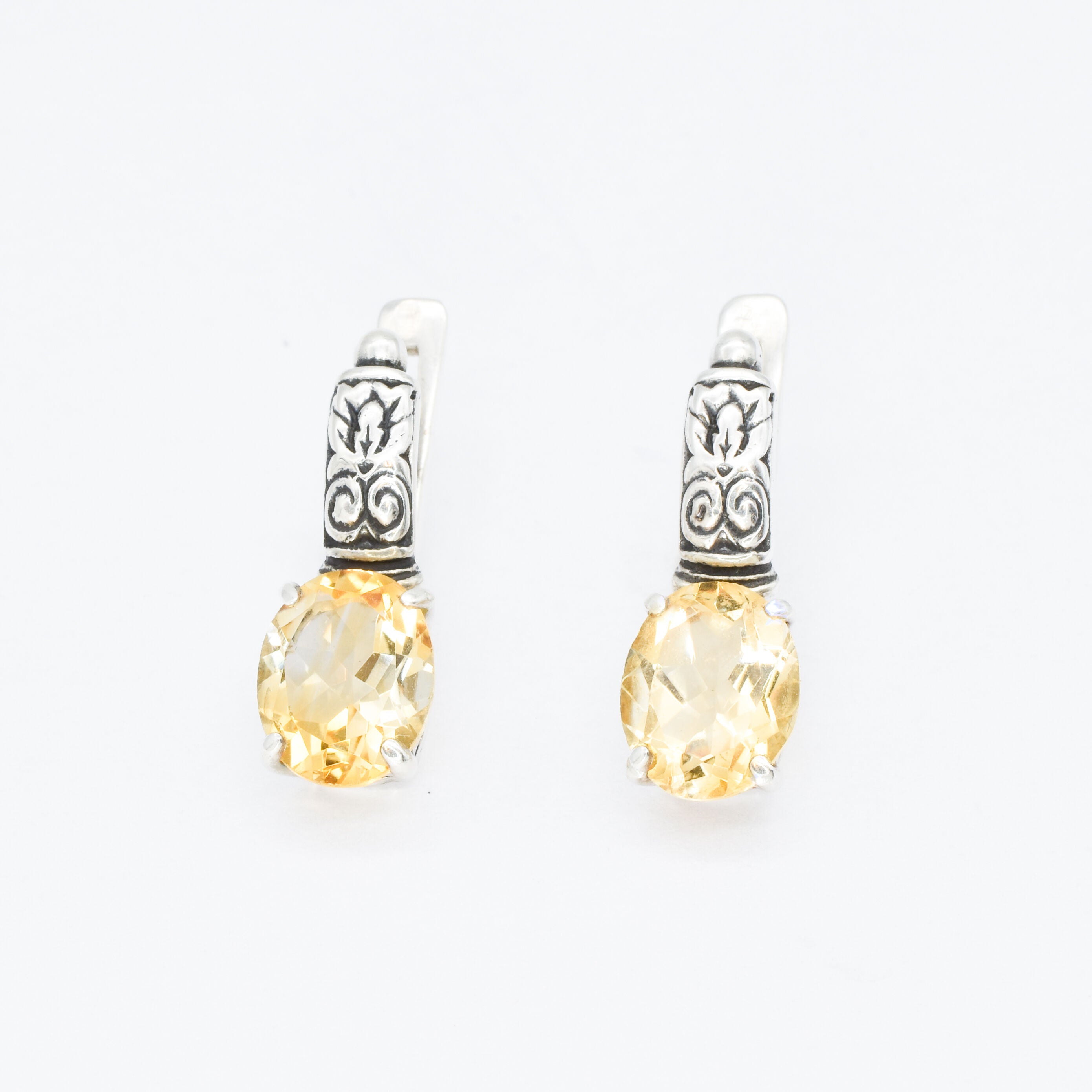 Genuine Citrine Earrings with a Natural Citrine in a perfect oval Cut & yellow color at 10x8mm (3 Cts) from Brazil.