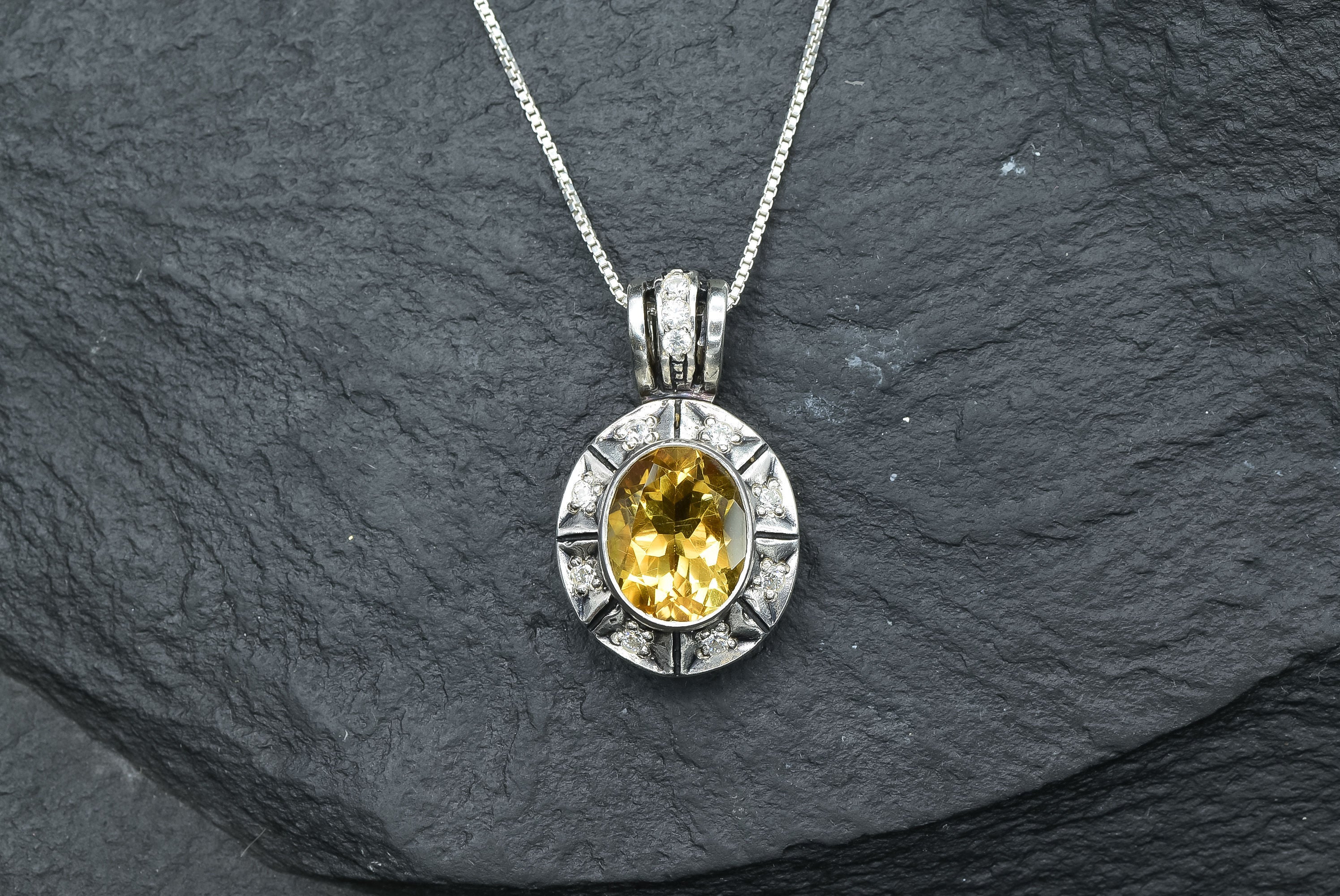 Genuine Citrine Pendant - Yellow Vintage Pendant - November Birthstone Necklace