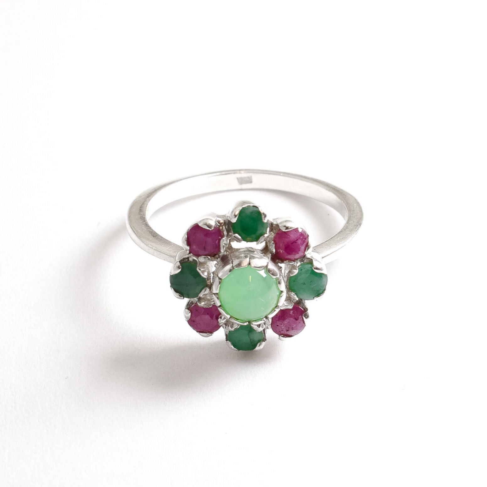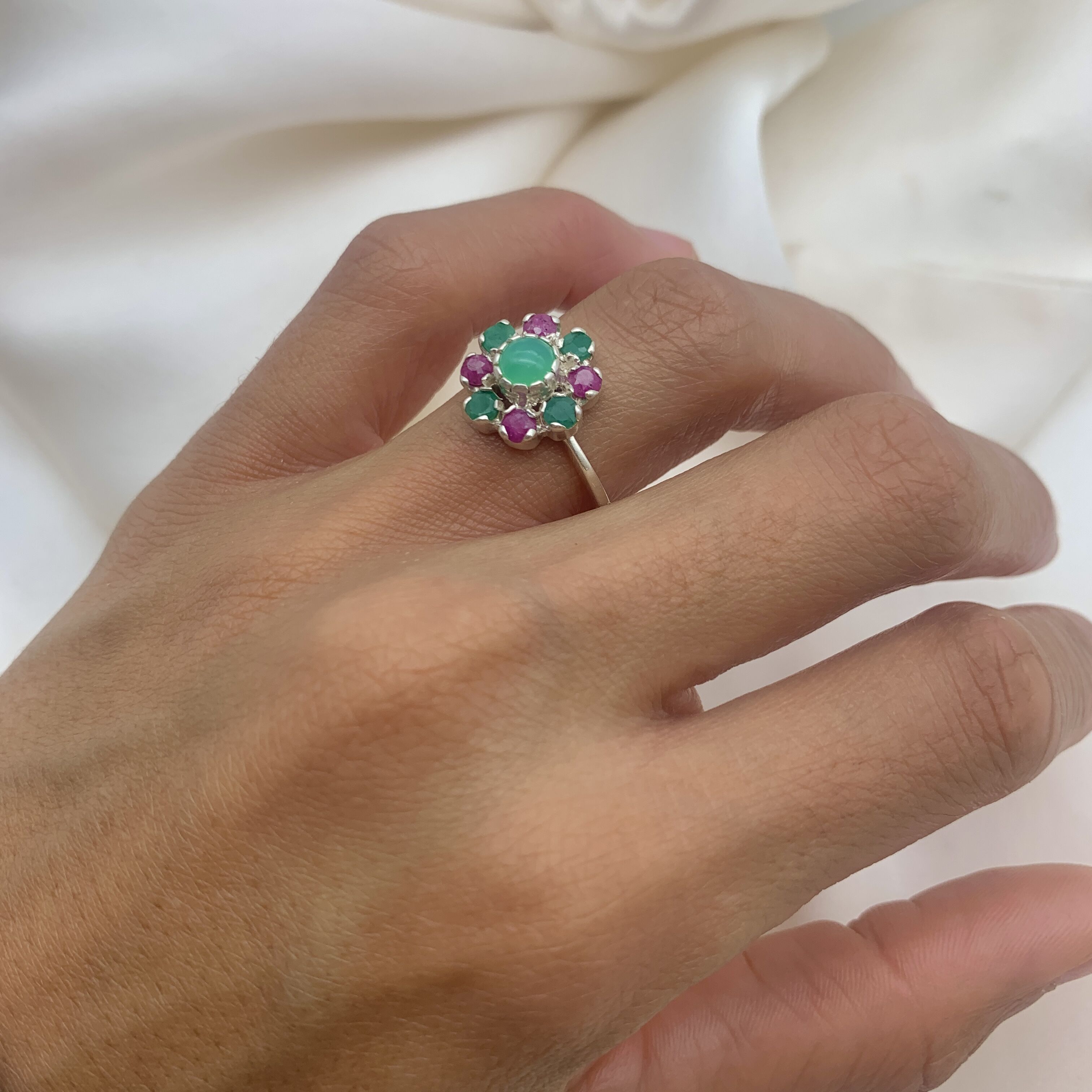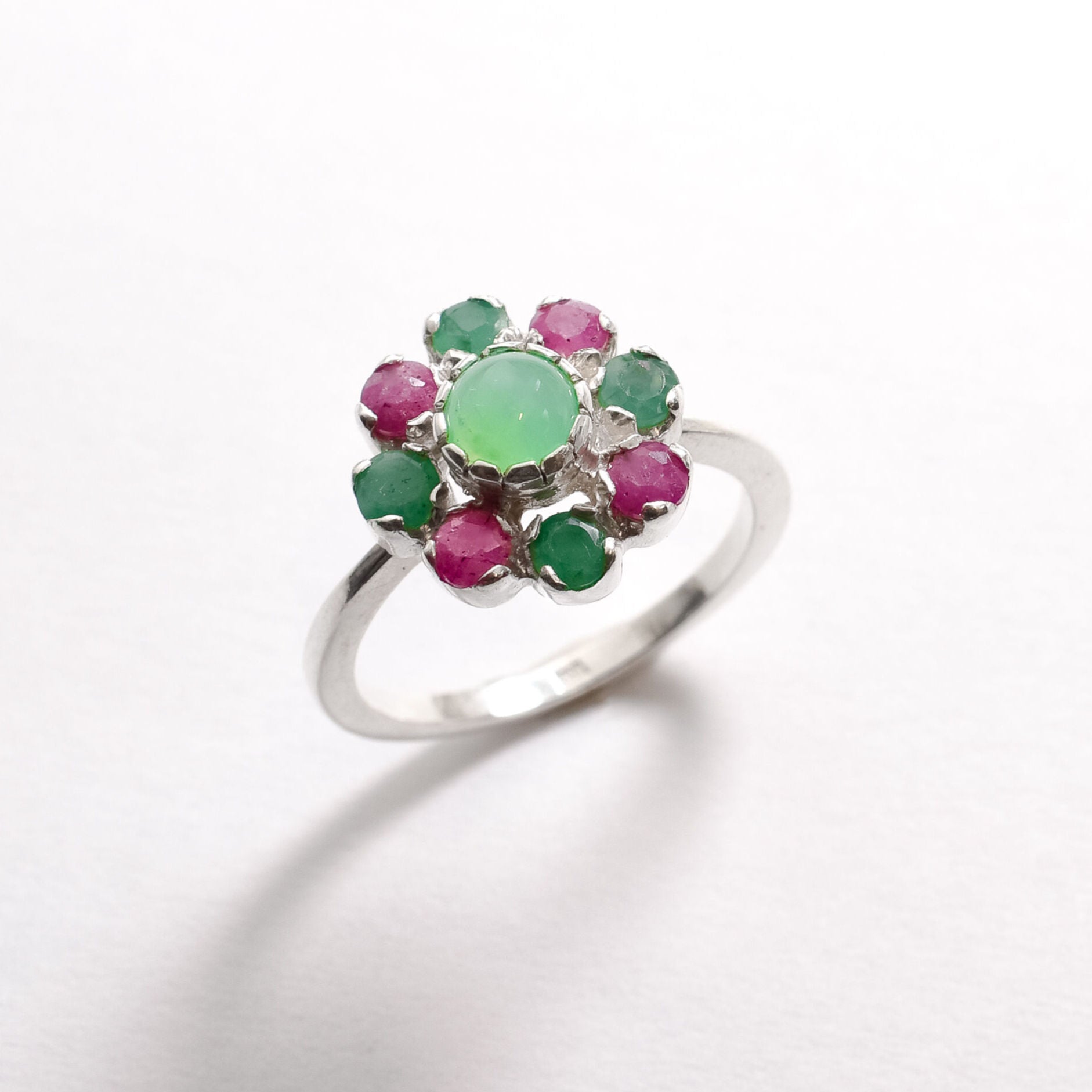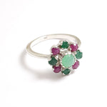 Chrysoprase Ring - Emerald Flower Ring - Daisy Ruby Ring