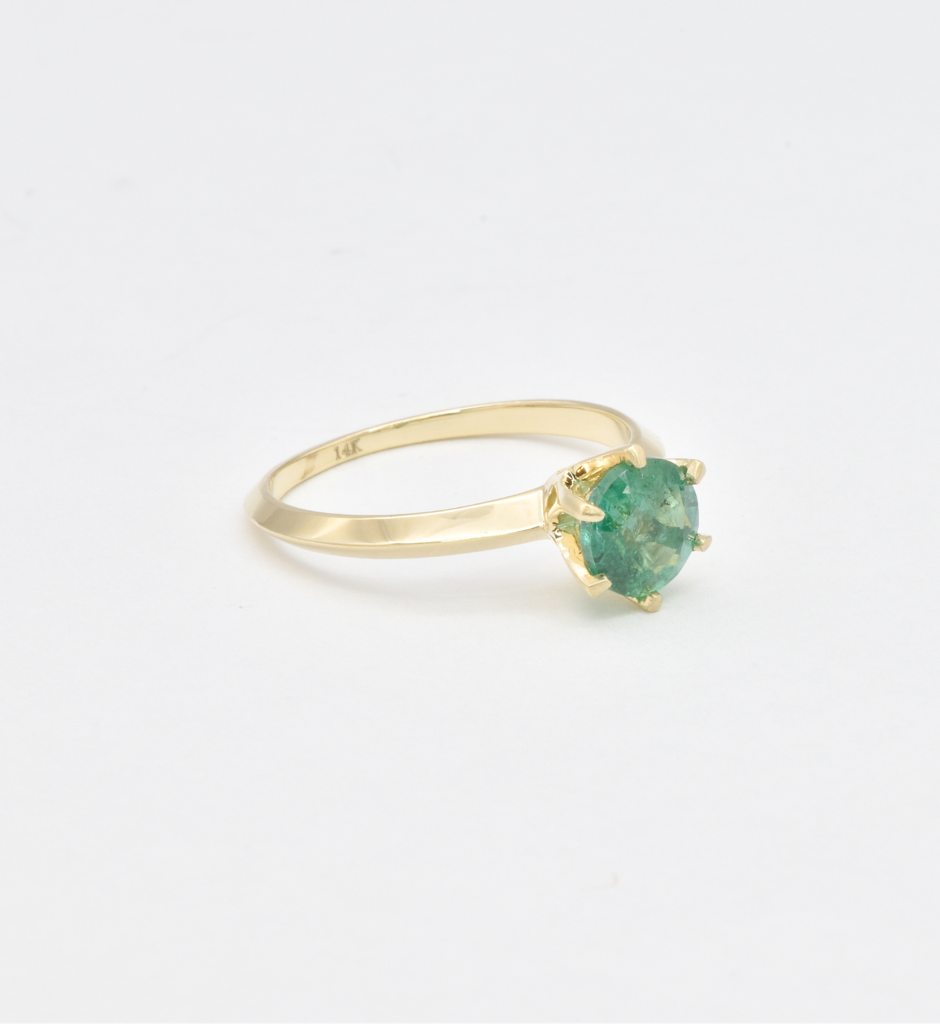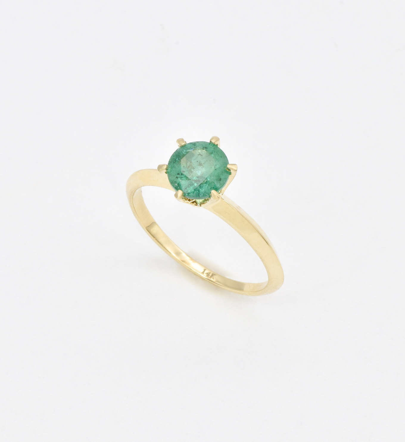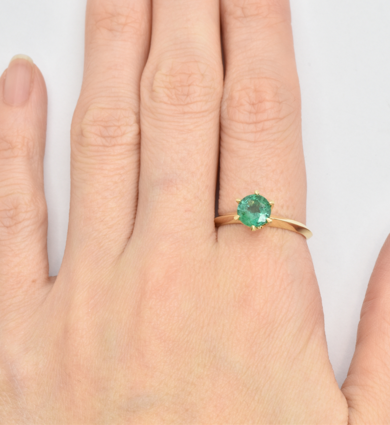 Certified Real Emerald Ring set with Natural Emerald, size 6 millimeters diameter, 0.84 Carats.