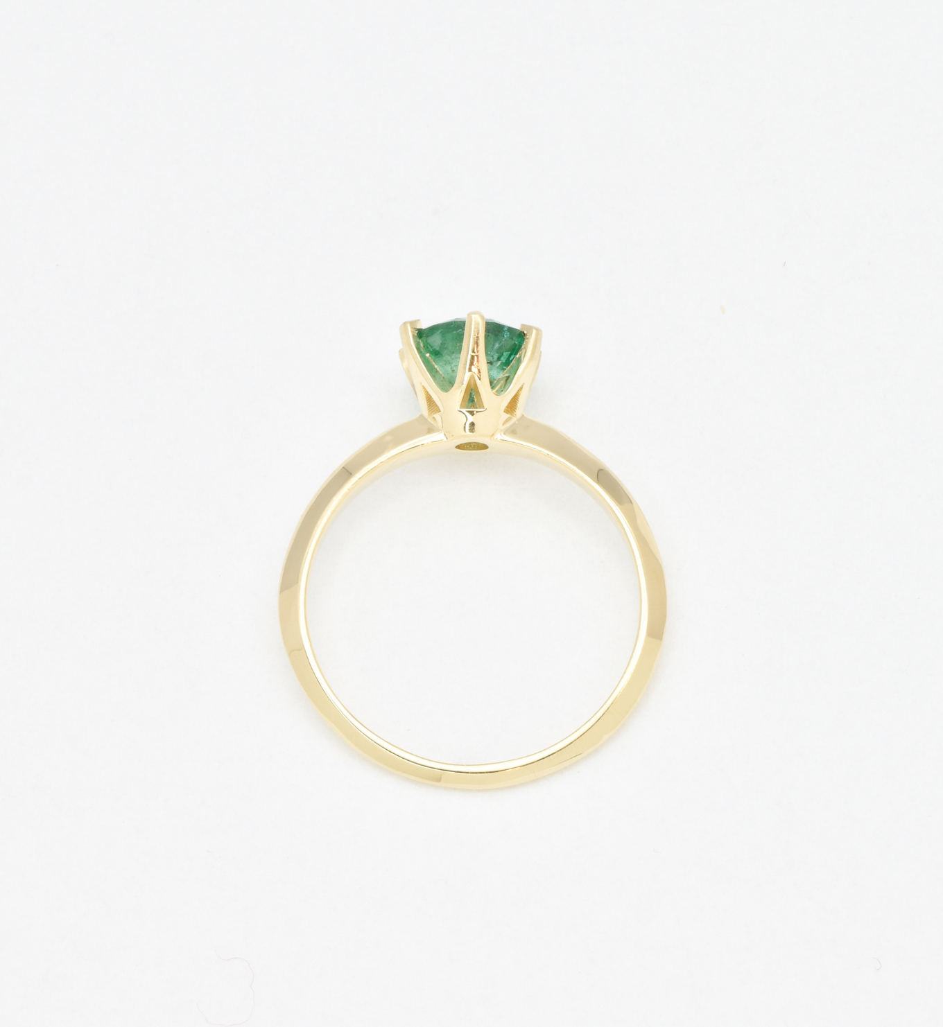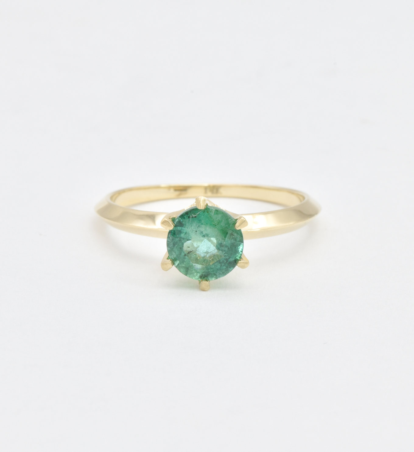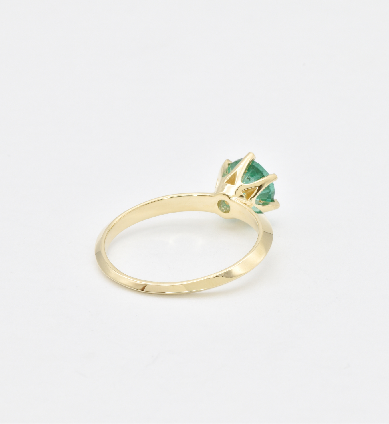 Certified Real Emerald Ring set with Natural Emerald, size 6 millimeters diameter, 0.84 Carats.