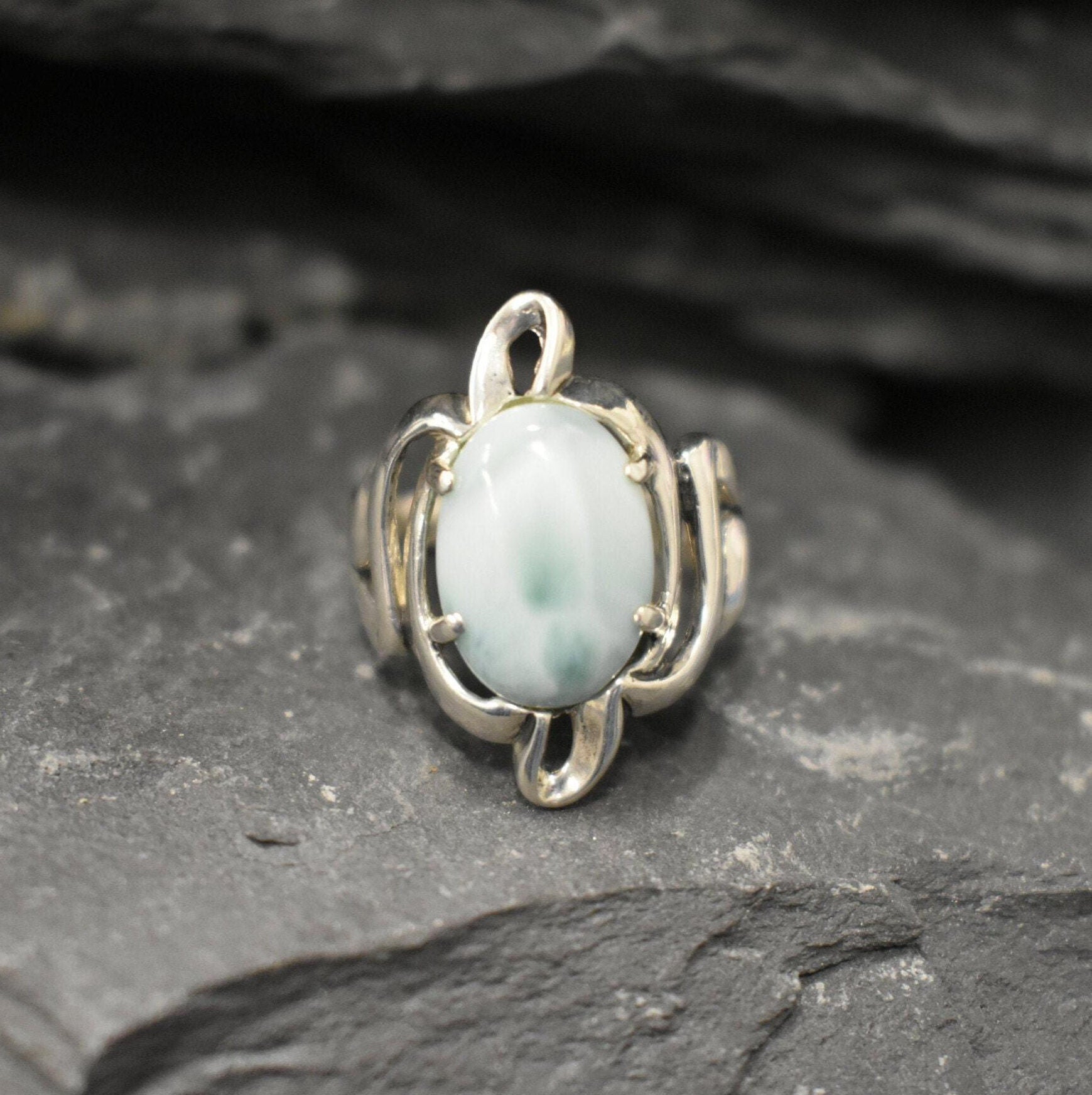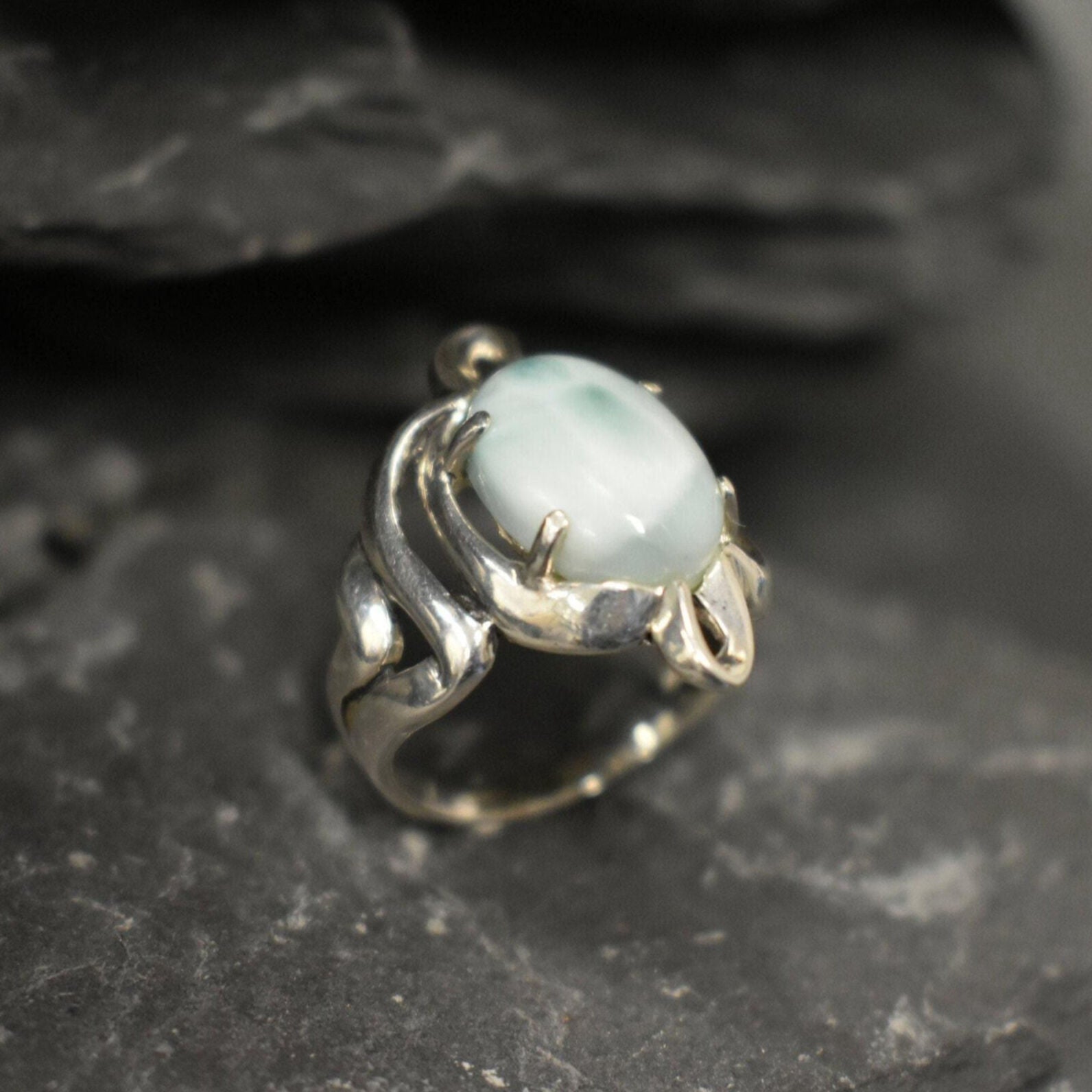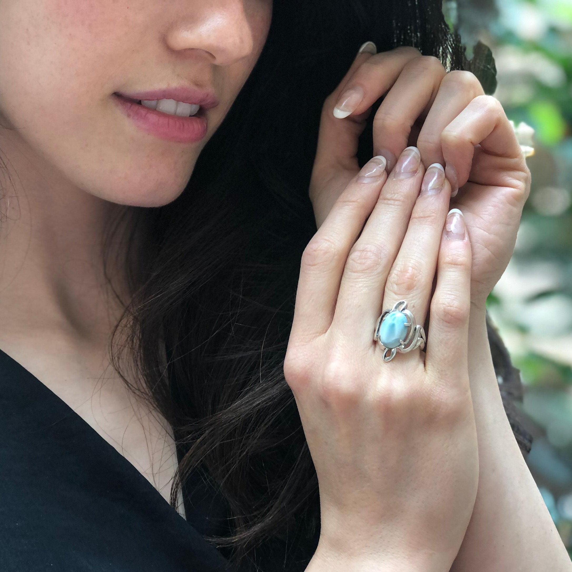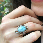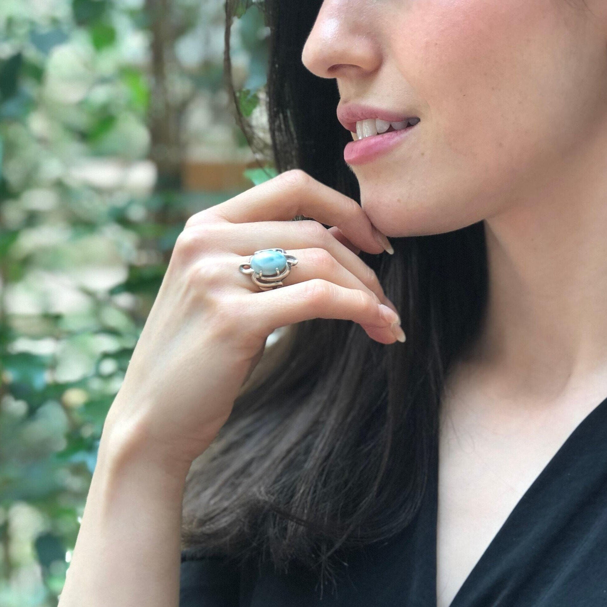 Genuine Larimar Ring - Large Blue Ring - Unique Statement Ring