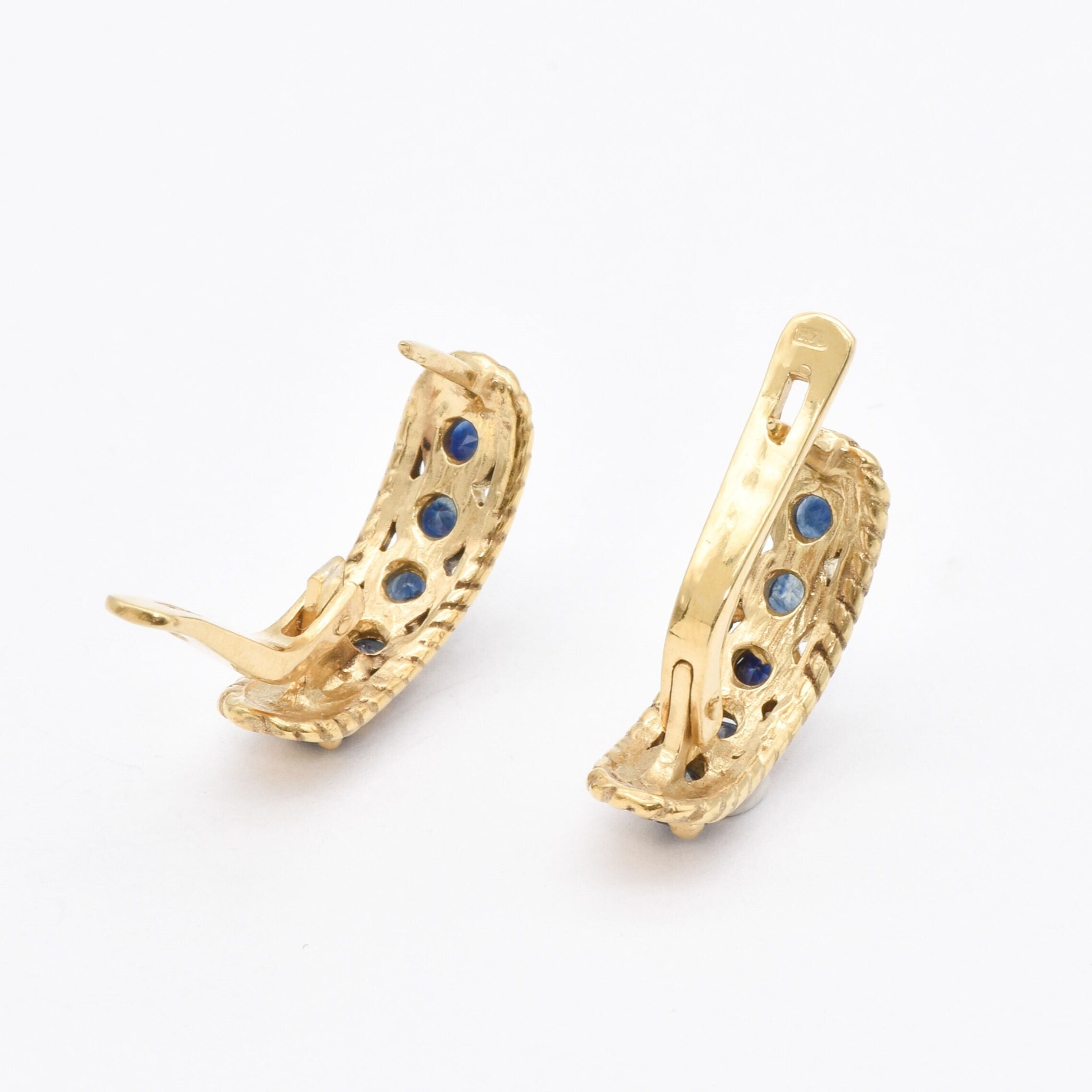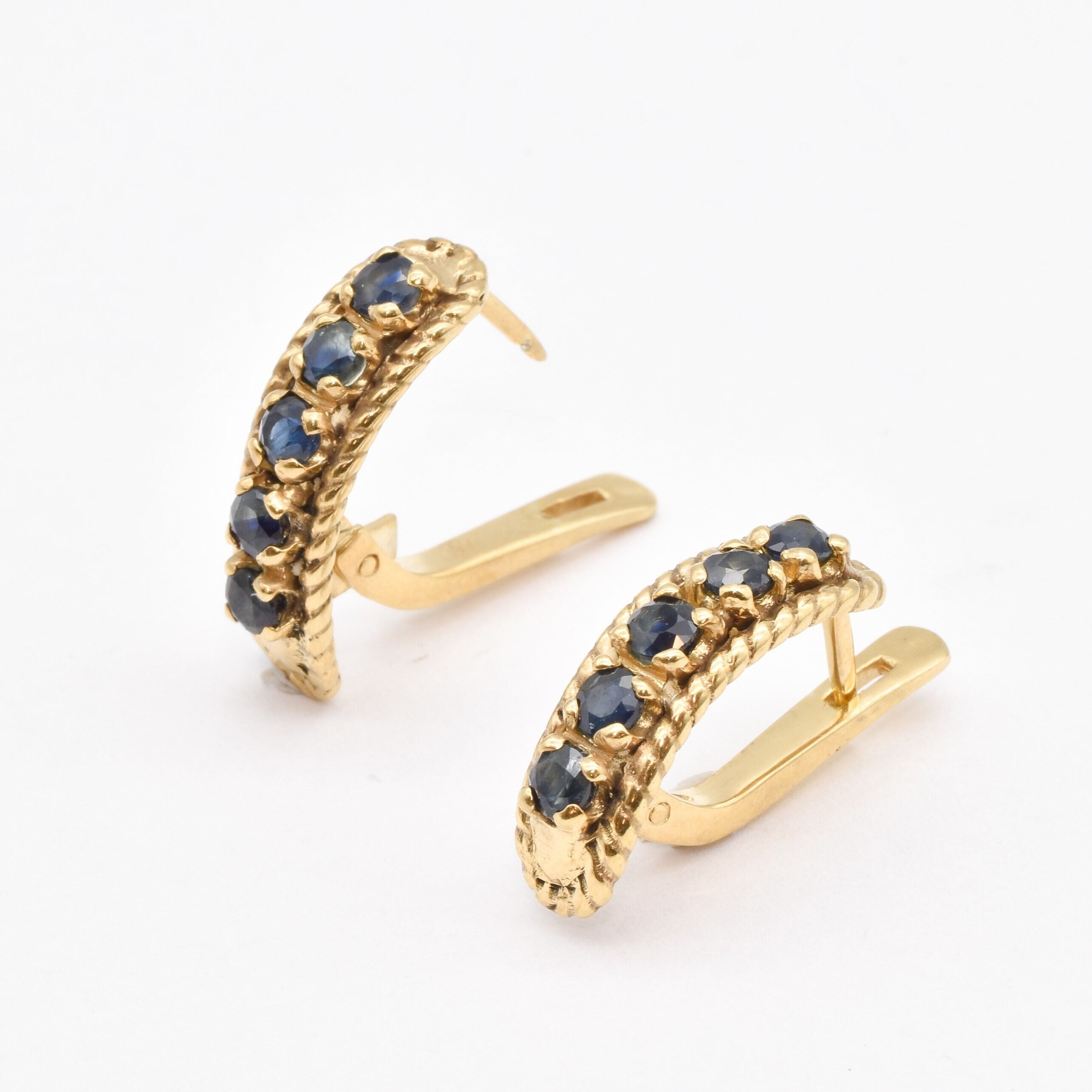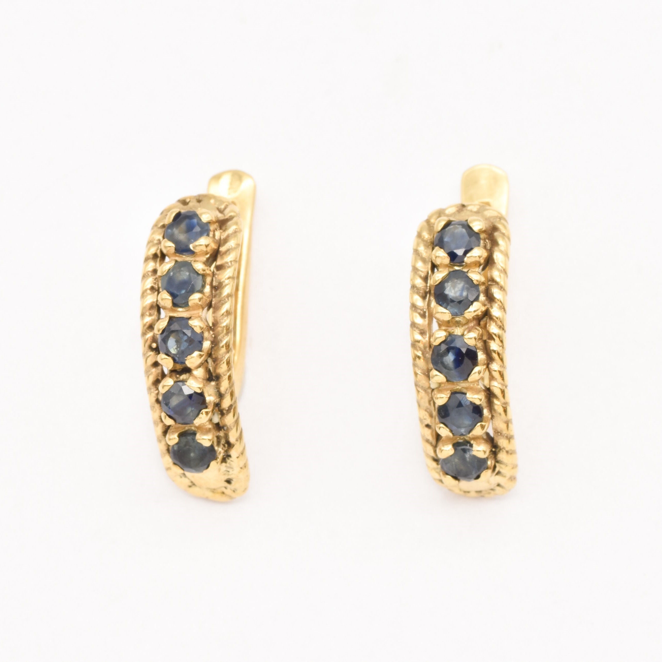 Genuine Sapphire Earrings - Gold Vertical Earrings - Blue Vintage Earrings
