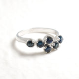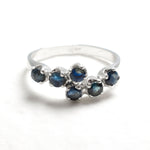 Genuine Sapphire Ring set with a Natural Sapphire in a diamond cut & natural blue color, 3mm each (1 Ct all) Burma.
