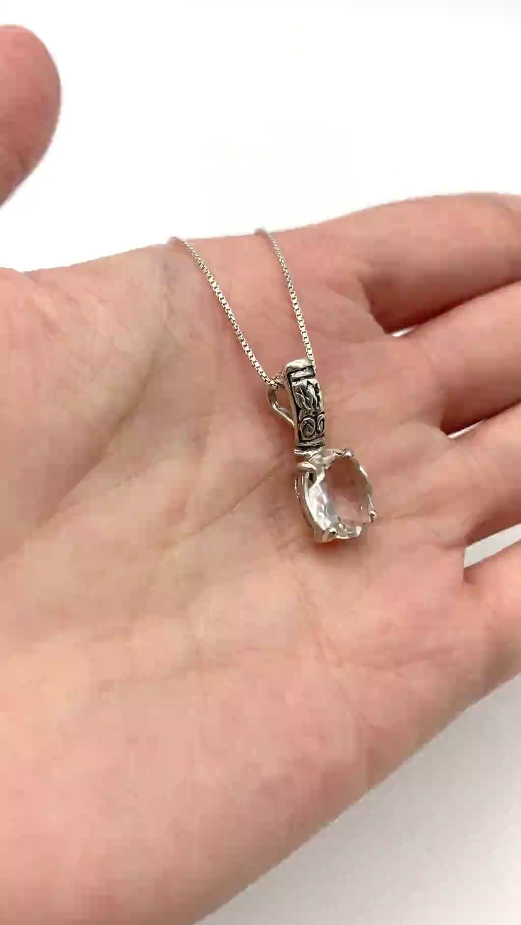 Genuine Topaz Pendant set with a Natural White Topaz in a perfect diamond cut & flawless clarity, at 10x8mm (3 Cts) from Brazil