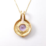 Amethyst pendant crafted in 18k gold vermeil, featuring a round purple amethyst, perfect for everyday elegance and special gifting.