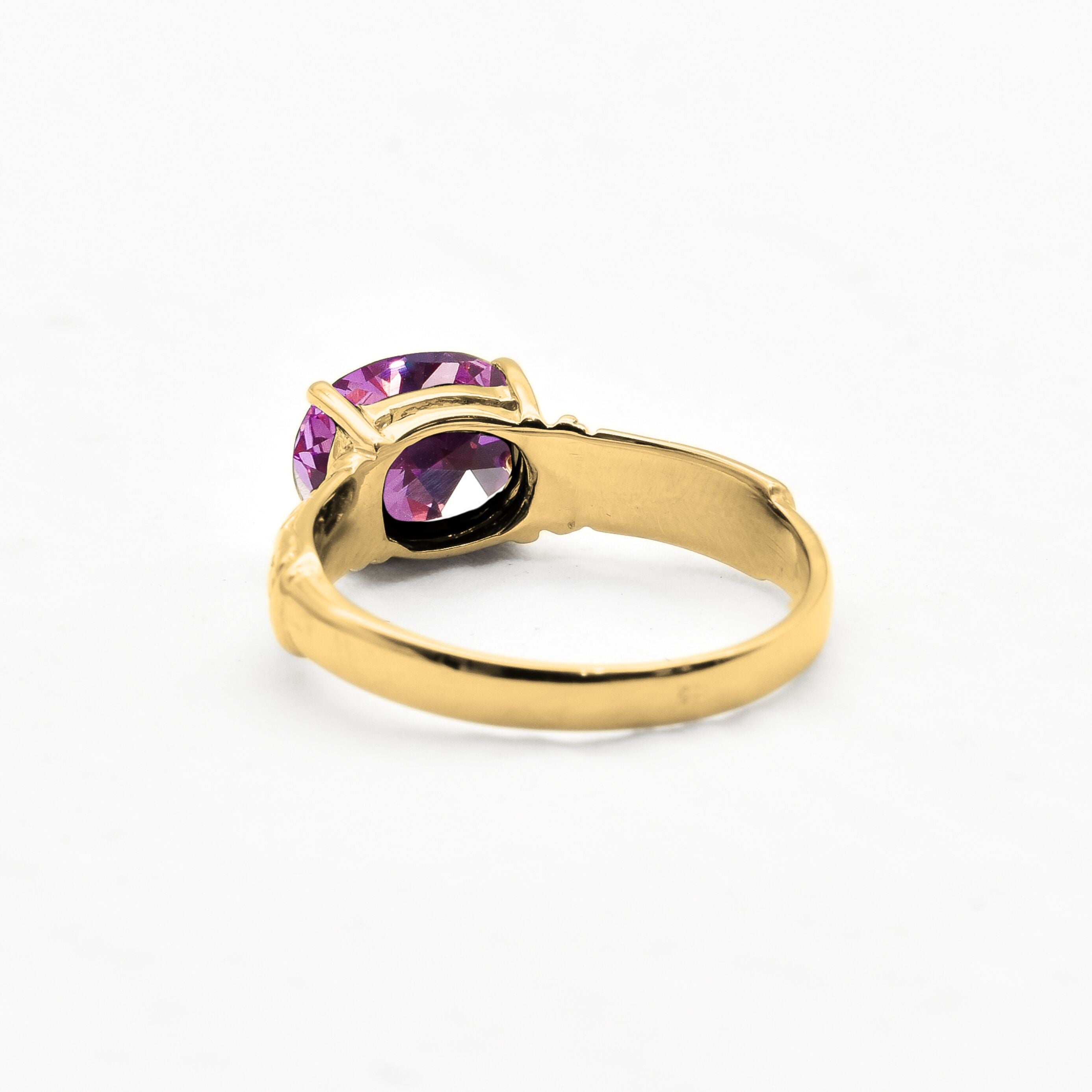 Gold Amethyst Ring set with Natural Amethyst in a perfect diamond cut & stunning natural purple color, at 10x8mm (3 Cts) from Brazil.