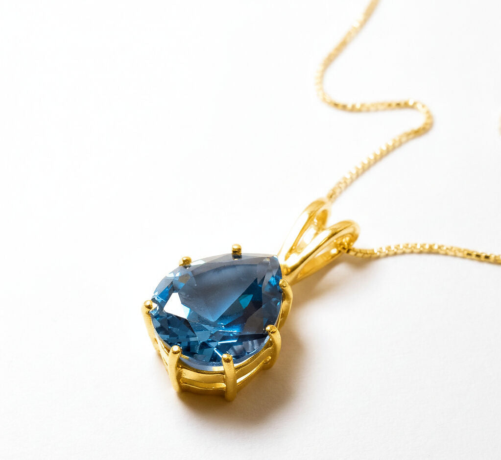 Gold Aqua Pendant - Teardrop Aqua Necklace - Gold Teardrop Necklace