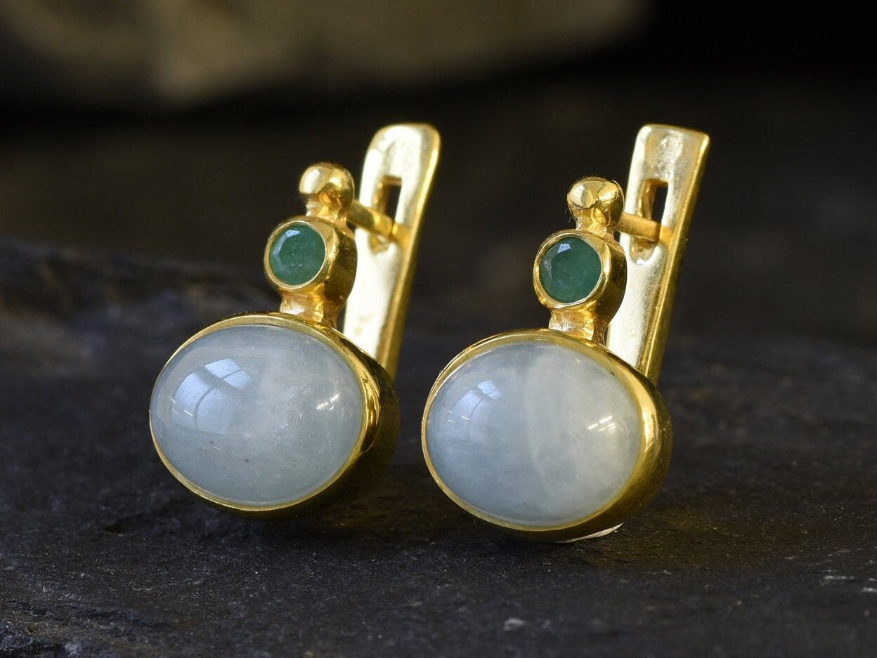 Gold Aquamarine Earrings - Natural Aquamarine Earrings, March Birthstone Earrings