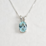 Gold Aquamarine Necklace set with a Created Aquamarine in a perfect diamond cut, flawless clarity & stunning aqua color, at 8x6mm size (2 Cts).