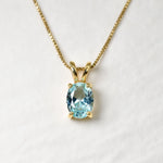 Gold Aquamarine Necklace - Blue Solitaire Pendant - Gift For Mom