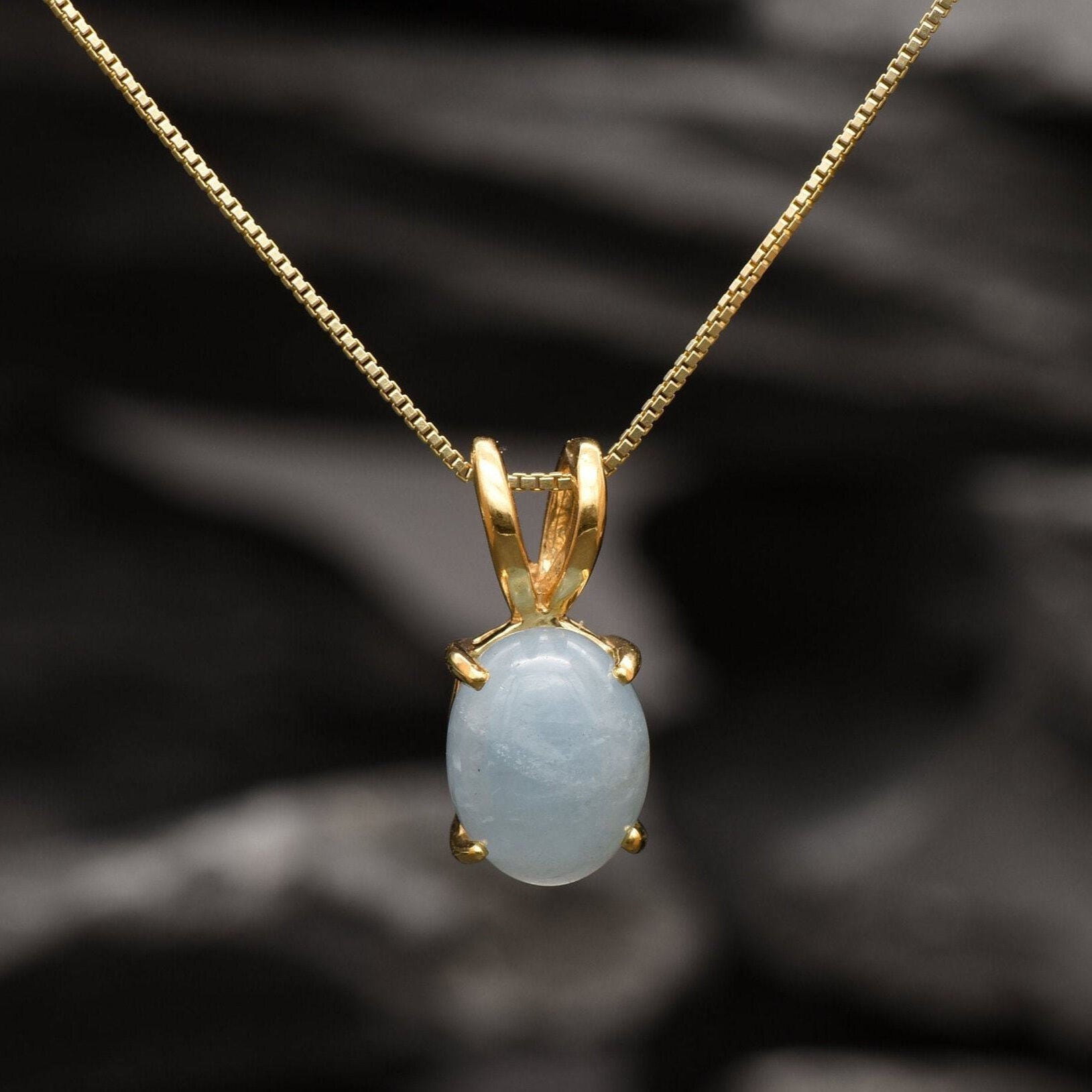 • Aquamarine: 10x8mm, 3 Cts, cabochon cut