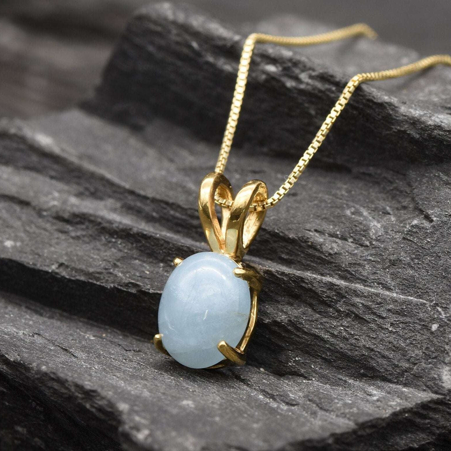 Gold Aquamarine Pendant - Natural Aquamarine Necklace, Gold Aqua Necklace