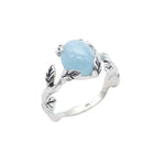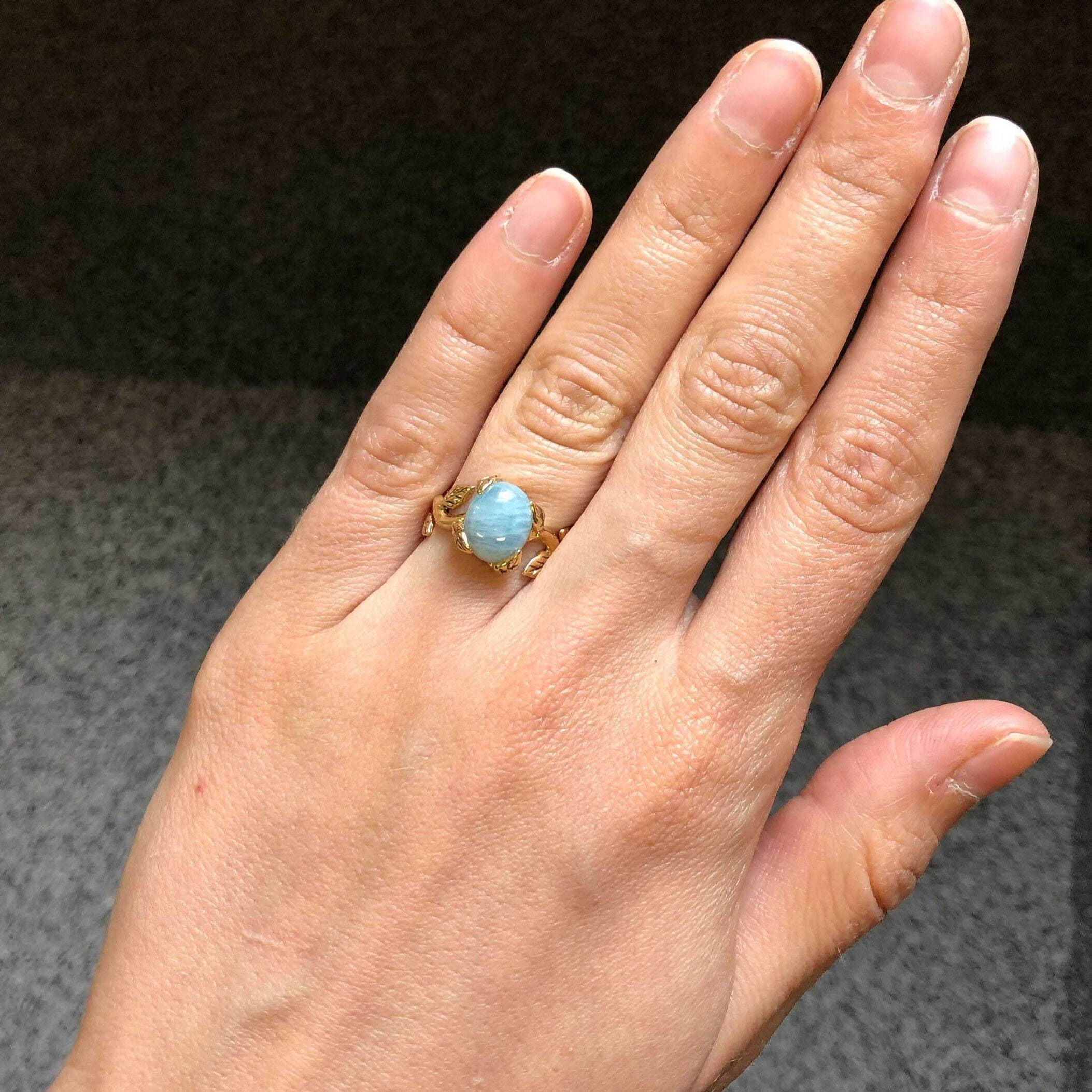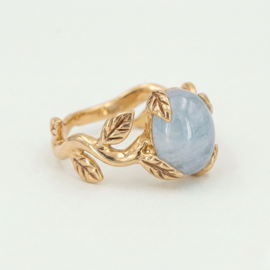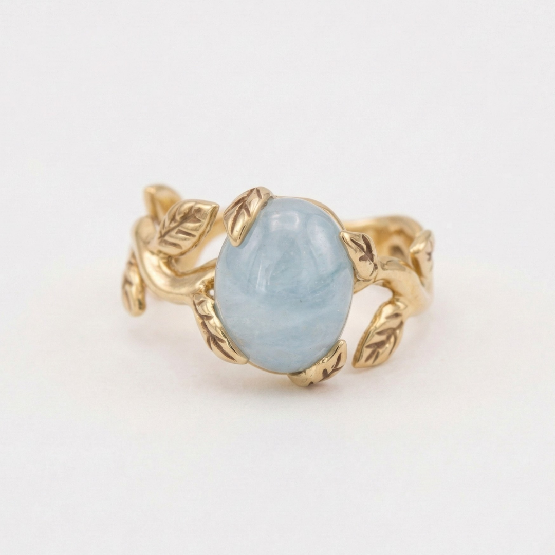 Aquamarine Gold Ring - Gold Leaf Band - Aquamarine Vintage Ring