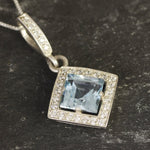Vintage Blue Topaz Gold Pendant, Natural Blue Topaz Necklace, Square Blue Topaz Pendant