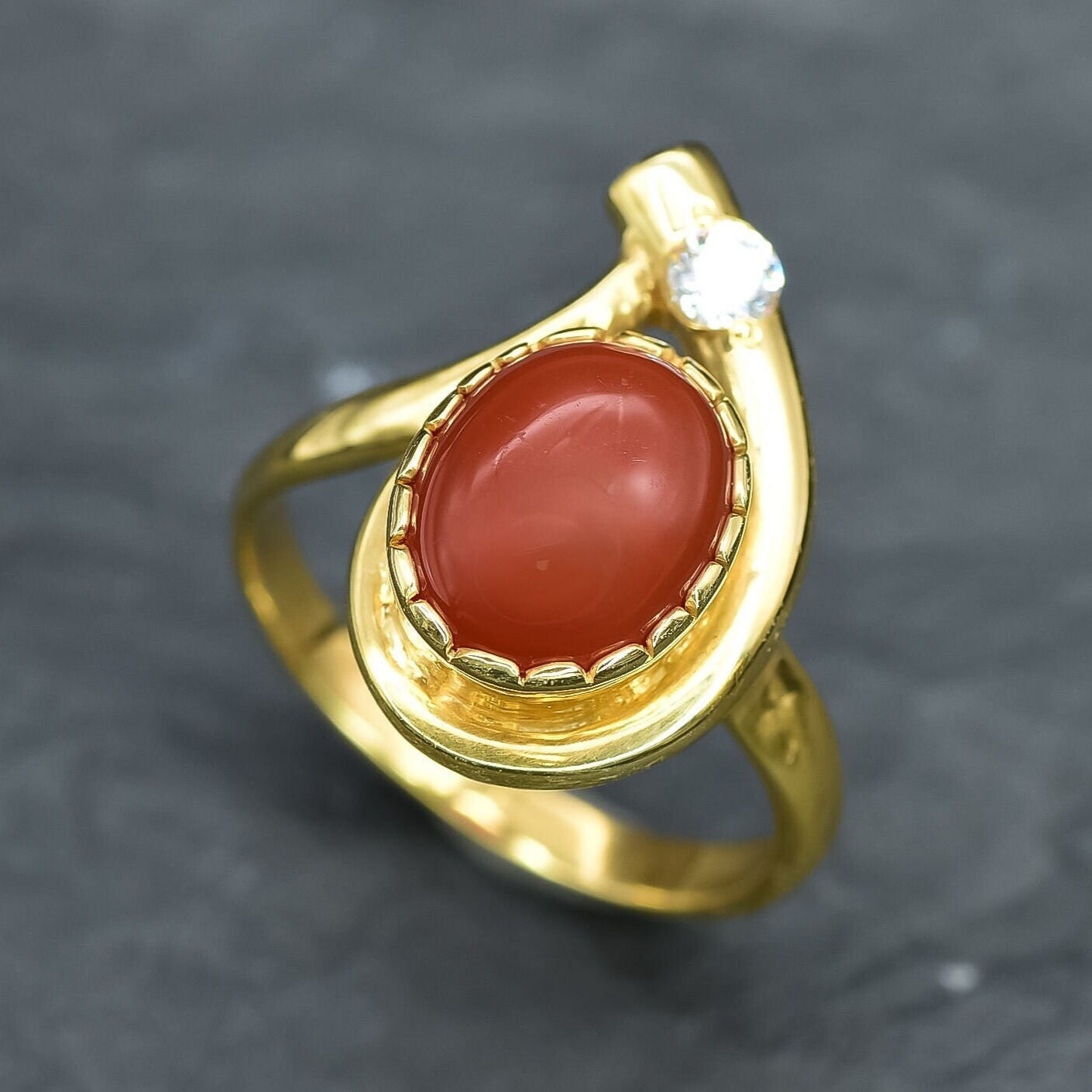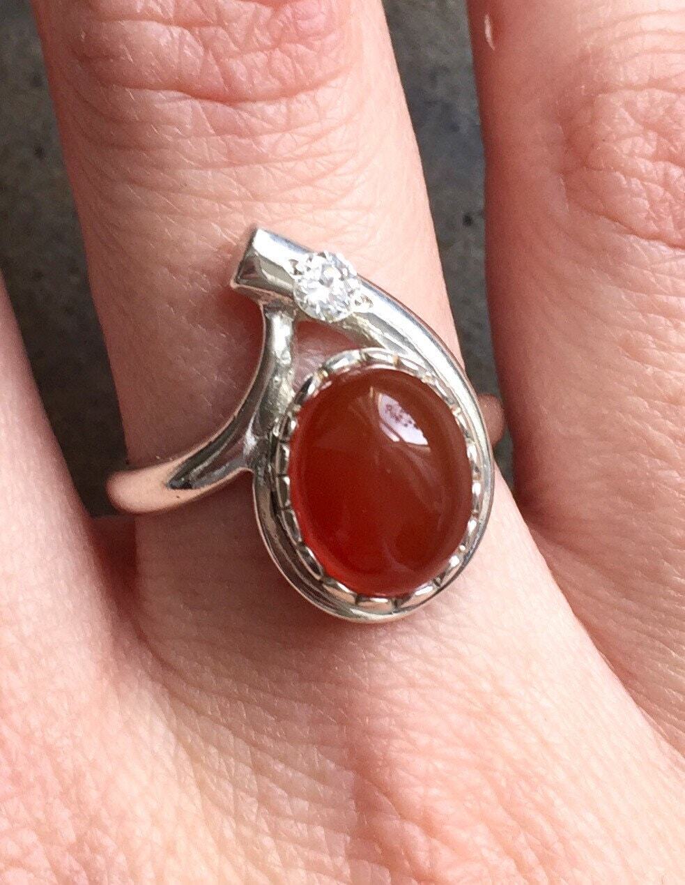 Red Agate Ring, Carnelian Ring, Natural Agate, August Birthstone, Vintage Rings, Red Ring, August Ring, Solid Silver Ring, Agate, Carnelian(1)