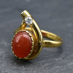 Gold Carnelian Ring - Red Teardrop Ring - Vintage Cocktail