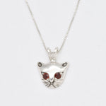 Gold Cat Necklace - Natural Garnet Pendant - Cat Lover Pendant