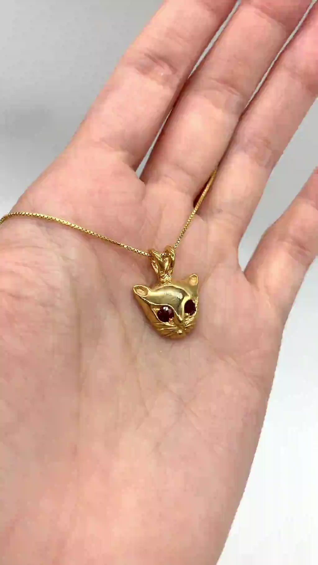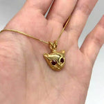 Gold Cat Necklace set with Natural Garnet in a diamond cut & deep red color, at size each (0.3 Ct combined) from Mozambique.